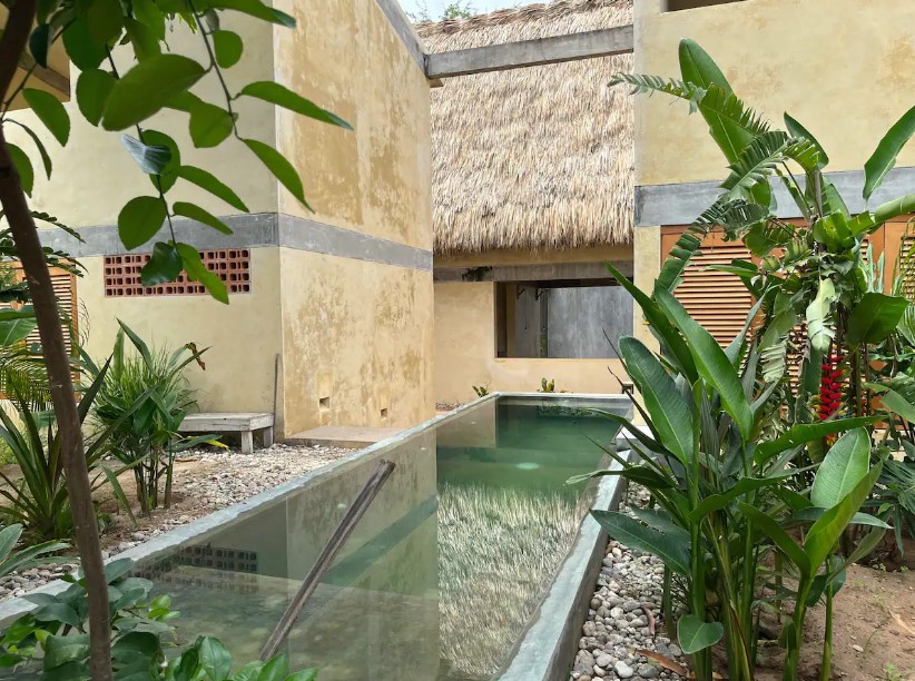 Agua de Coco, cuenta con dos habitaciones con cama king size, baño privado, bañera, jardín privado, fogatero y piscina privada. Además de tener una cocina abierta ideal para parrilladas, estacionamiento y es una casa pet friendly. Sin duda, es el espacio ideal para esos viajeros que buscan tranquilidad y aventura en un mismo paquete.