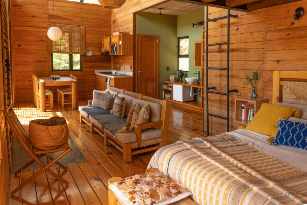 Casa de los Cuatro Vientos está ubicada en lo alto de la montaña y cuenta con todo lo necesario para que disfrutes unas vacaciones llenas de paz y tranquilidad, además de poder reconectar con la naturaleza. Esta casa o cabaña estilo loft cuenta con una cama queen size, más dos camas individuales, sala con chimenea, comedor, cocineta, terraza y asador, ideal para hospedar entre cuatro a cinco personas.