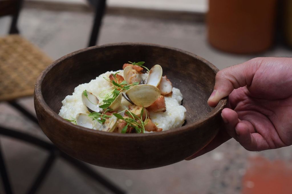 Este lugar te va a sorprender porque las presentaciones también son parte esencial de la experiencia sensorial y culinaria que ofrecen los chefs. Su plato de berenjena frita con pimiento de ajonjolí, baba ganush y humo de romero, se presenta a la mesa cubierto para que al destaparlo sientas el aroma ahumado del romero. Si eres fan de los rollitos de parra, en Casa Mila encontraras un risotto inspirado en este platillo, el cual va acompañado de jocoque de la casa y piñones. El pulpo es otro de los nuevos platillos del menú y este se sirve con papitas cambray y aceitunas kalamata.