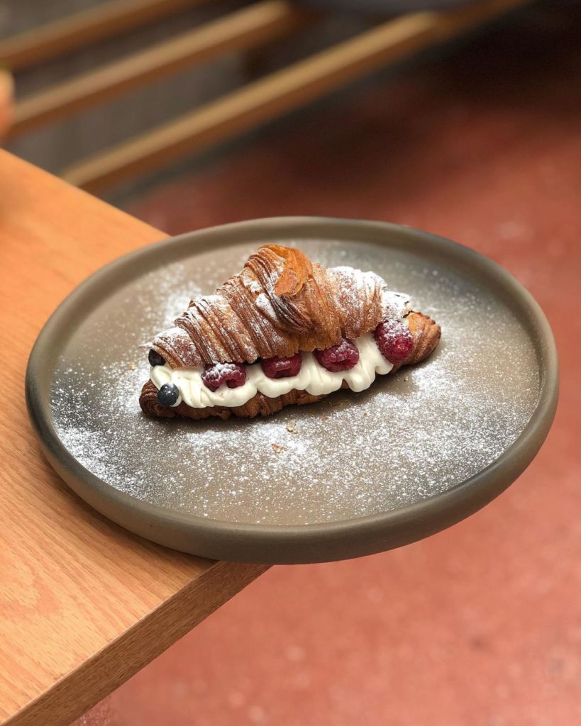 Para esos amantes del postre, este lugar tiene un merengue con espuma de maracuyá y algodón de azúcar, que es simplemente delicioso; ya que tiene el dulzor perfecto que contrasta con la acidez de la fruta. Además de diversa panadería dulce, algunas veces puedes encontrar croissants rellenos, conchas y por temporada pan de muerto con miel de cardamomo. Aunque este lugar es muy popular en los desayunos, te recomendamos que lo visites en las tardes y disfrutes una buena copa de vino en uno de los spots más bonitos de la Roma.