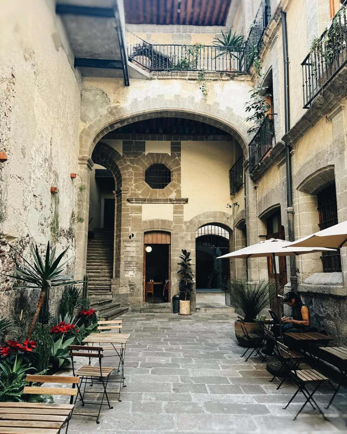 Otro de los grandes secretos de Casa Pétrea es que también puedes hospedarte ahí. Cuenta con 18 habitaciones rehabilitadas que conservan el aire histórico del lugar, combinando detalles vintage con muebles modernos y funcionales. Hay opciones para familias, parejas, grupos de amigos o viajeros solitarios. Todas las habitaciones están equipadas con cocineta, parrilla, mini refri, horno, cafetera, licuadora, utensilios básicos, toallas y secadora. Ya sea que vengas de vacaciones o por trabajo, es una gran opción: estás rodeado de museos, restaurantes, bares, galerías, iglesias y mucho más, y además cuentas con todo lo necesario para hacer home office con comodidad. Casa Pétrea es un gran ejemplo de cómo un espacio histórico puede recuperar su vida y abrirle las puertas al presente. Ya sea para pasear, leer, desayunar o quedarte unos días, vale mucho la pena descubrir este oasis escondido en el corazón de la ciudad.