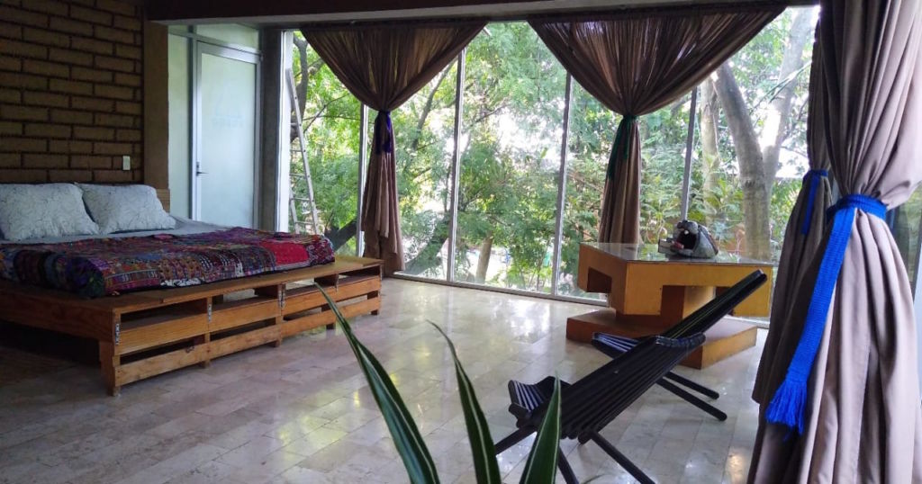 Casa Santi es el espacio rodeado de naturaleza en el cual podrás tener unas vacaciones de ensueño, sus espacios abiertos te harán conectar con la naturaleza, además tiene espacios llenos de encanto en los cuales podrás tener fotos increíbles del Tepozteco y de sus áreas verdes. Sus habitaciones son de madera reciclada, y tiene un estilo japandi que te encantará. Todas perfectas para ver los amaneceres del valle.