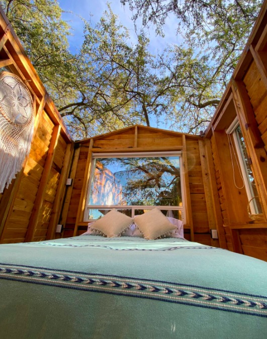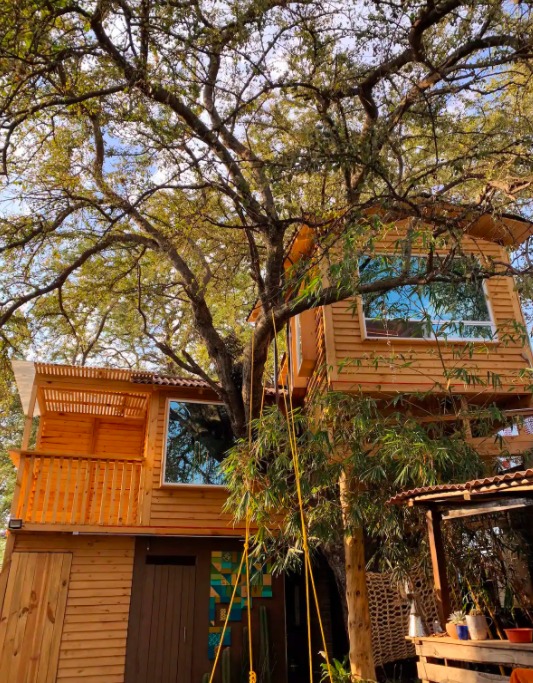 Ubicada en San Jacinto Amilpas, en Oaxaca, esta es una de las casas del árbol más populares entre los mexicanos, pues sus detalles rústicos y naturales la convierten en el alojamiento perfecto para los amantes de la tranquilidad. La casa, en su totalidad, está hecha de madera y lo mejor es que el techo de la única habitación es corredizo, por lo que en las noches, puedes disfrutar viendo el cielo estrellado desde la cama. Otro de los atractivos de este lugar es su regadera, ubicada en el exterior, en un pequeño espacio oculto detrás del tronco del árbol que atraviesa la estructura. Además, para quienes busquen pasar unos días bajo el sol, el alojamiento tiene una pequeña terraza con alberca.