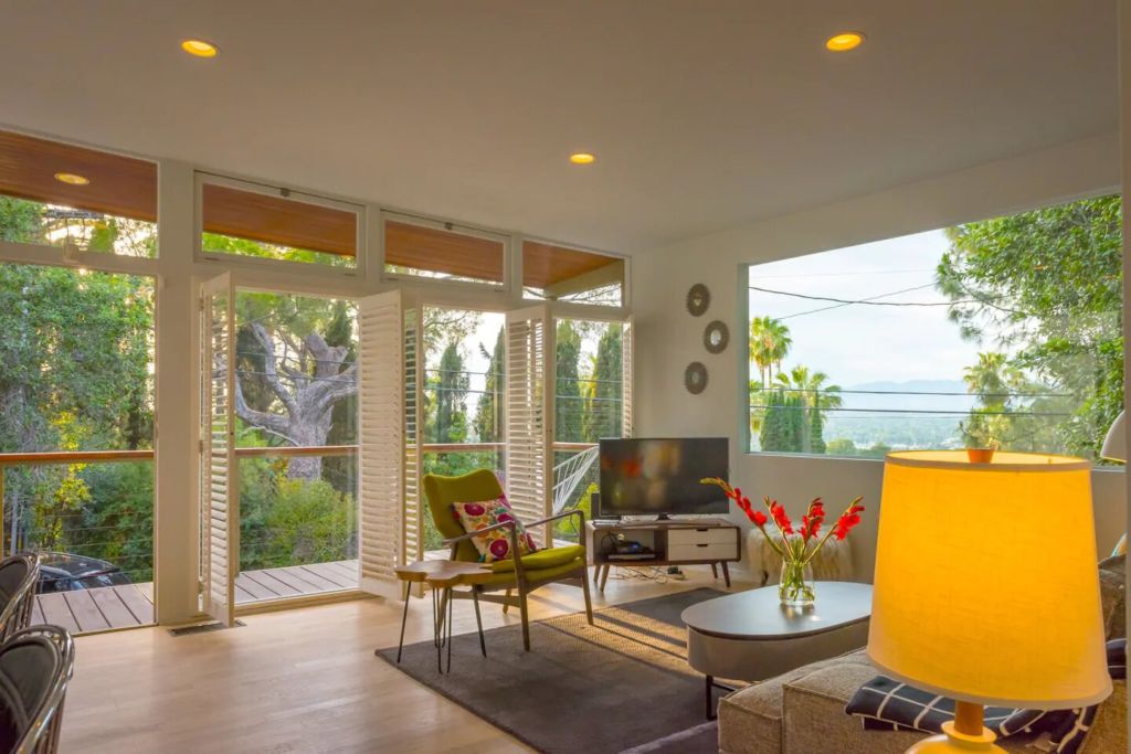 Un bungalow de dos dormitorios y dos baños con vistas al luminoso  Hollywood. Esta casa estilo casa en un árbol fue diseñada por Greta Grossman en 1954 y solía albergar a las superestrellas del pop de los 70 Sonny & Cher. Además, el exclusivo vecindario está a solo cinco minutos a pie desde el inicio de Wisdom Tree Hike. Visítala desde $200 USD la noche.