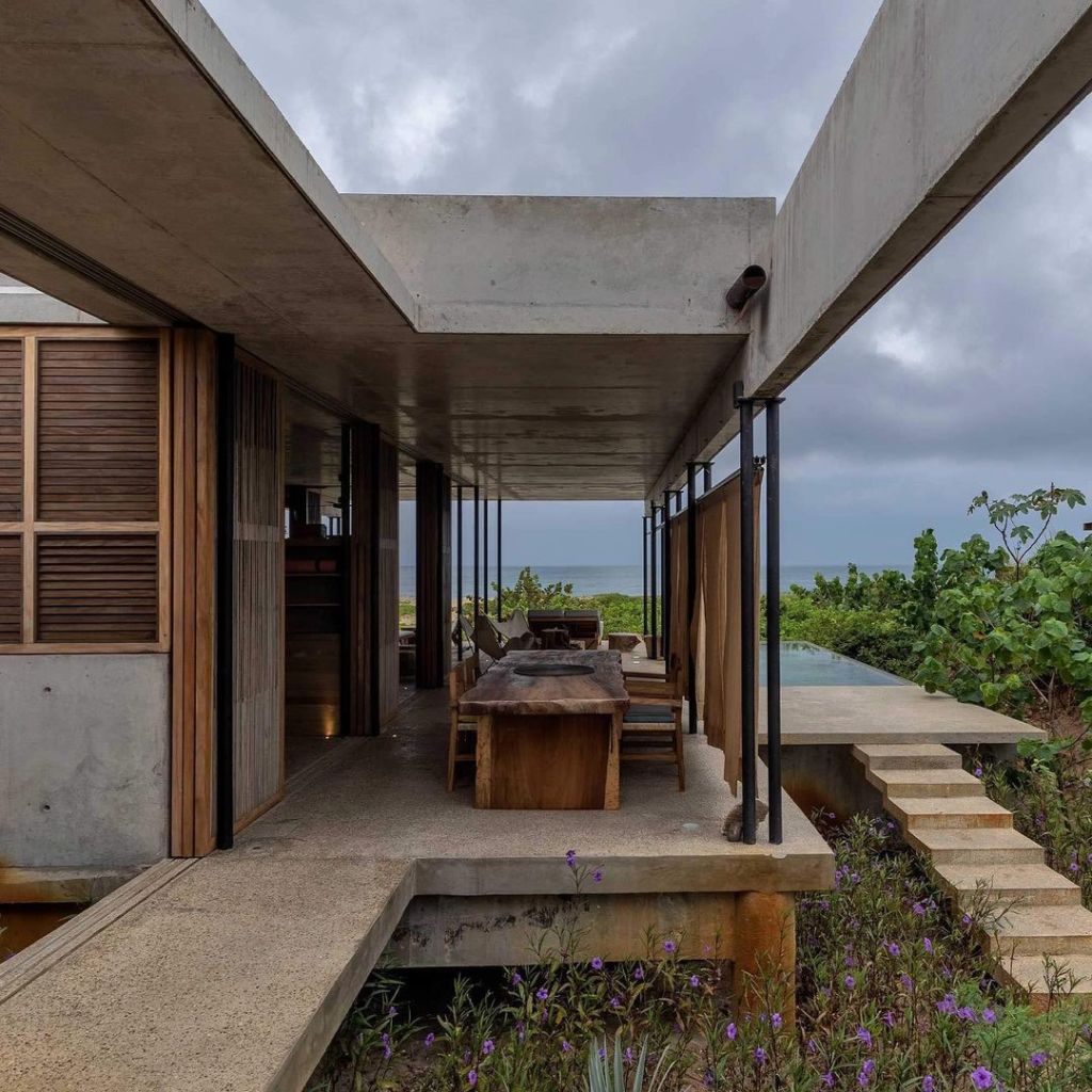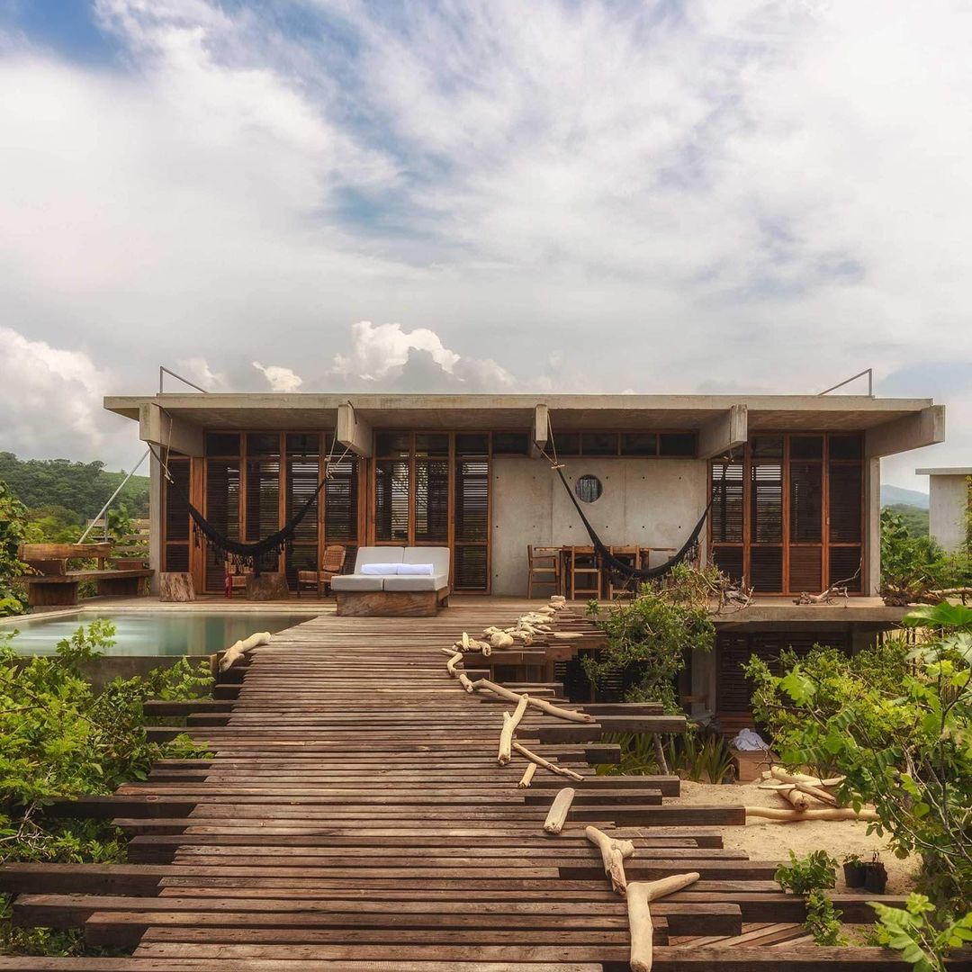 Al borde del Océano Pacífico, entre la vegetación indómita de la costa y las imponentes montañas oaxaqueñas, emergen como si fueran parte del paisaje las casas María y Matilda. El diseño brutalista de sus estructuras —a cargo del despacho de arquitectos Gaeta-Springall Arquitectos— busca mimetizar la construcción con el entorno a partir de espacios cambiantes que se adaptan tanto al clima como a las necesidades de cada huésped. Puerto Escondido ya es por sí mismo un destino digno de visitar, y estas casas de playa capturan y potencian ese encanto.
