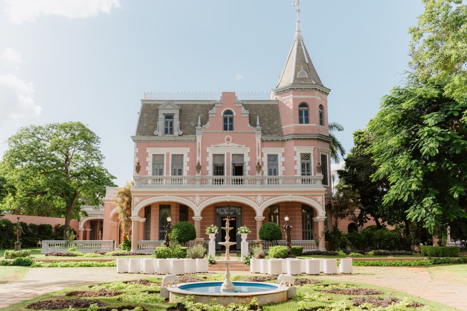 El Pinar, también conocido como el castillo rosa de Mérida, se encuentra ubicado en la Calle 60, entre la Calle 35 y la avenida Colón, casi a espaldas de Paseo de Montejo, la avenida más emblemática de esta ciudad repleta de casonas antiguas y monumentos históricos. Como tal, esta propiedad se construyó entre 1898 y 1904 bajo la influencia de los castillos europeos. No es difícil notar que su arquitectura es un guiño al estilo francés, el cual se hace evidente en cada detalle y cada ventanal, pues cabe notar que los materiales de construcción se importaron desde Europa.