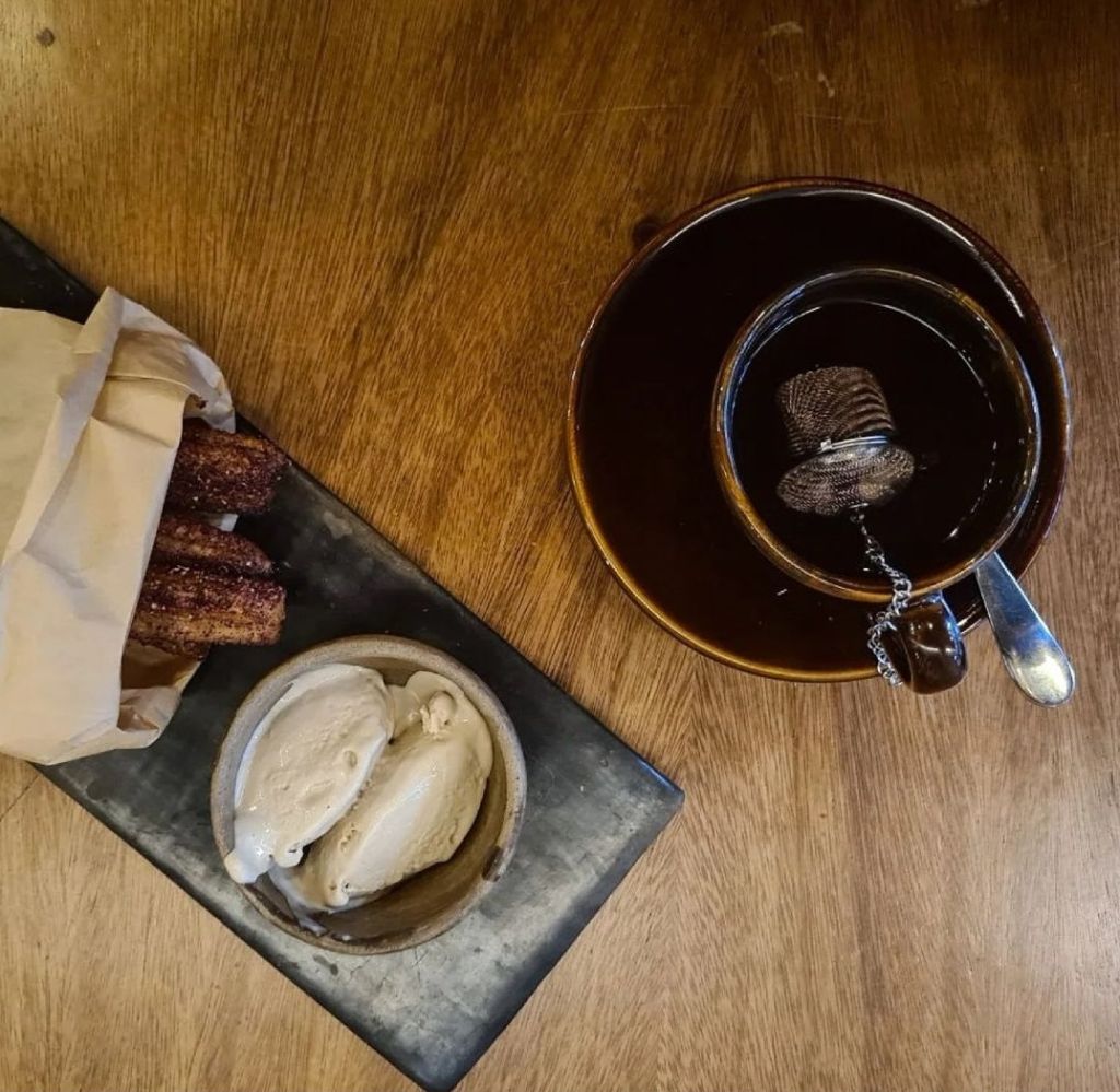 Al tener tan poco tiempo de apertura, es posible que algunos elementos del menú cambien, sin embargo, lo que te recomendamos es ir con bastante tiempo para disfrutar cada platillo y bebida de este lugar. Ya sea para tomar una cerveza acompañada de su aguachile de camarón con salsa negra o para ir por unos churros con azúcar de pétalos de rosas y helado de capuchino; este espacio te enamorará por su cuidado espacio y por la comida creativa y alternativa que te saca de tu zona de confort.