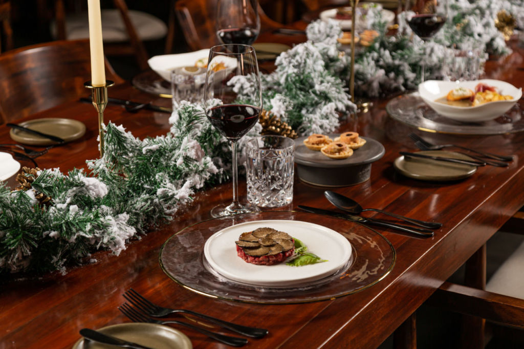 Sí buscas alta gastronomía, Bajel es uno de los secretos mejores guardados del hotel Sofitel en el piso 13,. Aquí podrás tener un festejo de navidad único, “La splendeur de Noël” con la inspiración del lujo francés y l’art de vivre gracias a su menú degustación de 8 tiempos en los que podrás probar un amuse-bouche de trufa negra y porcini, caviar de la maison Petrossian y pan de maíz criollo, crema de langosta y camote amarillo, tiradito de callo fresco con aderezo de yuzu y vegetales encurtidos, un wagyu acompañado de tatin de cebolla confitada y puré de coliflor y vainilla de Papantla, para seguir con un sorbete de ciruela y terminar con un parfait de miel melipona y almendra crujiente. El menú tiene un precio de $2,900 pesos sin bebidas alcohólicas o $4,500 pesos acompañado de vinos y champagne.