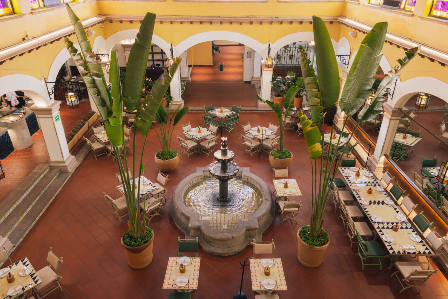 Si alguna vez visitaste el Sanborns de Avenida de la Paz, quizá recuerdes que se trataba de una casona enorme. En lugar de fraccionarlo, Cha Cha Chá San Ángel aceptó el reto completo para recuperar el edificio completo respetando la escancia del inmueble. Esto significó un proceso meticuloso que balanceara modernización y restauración. Por un lado, se conservan la cantera original, los vitrales en lo alto de los muros, los techos de madera pintados a mano y, por supuesto, la fuente central. Por otro lado, el interiorismo sigue haciendo guiños a la estética de los restaurantes clásicos, pero con un giro más contemporáneo.