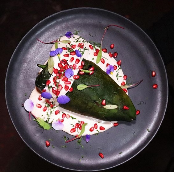 ¿Qué mejor que tener una maravillosa vista hacia el Lago de Chapultepec mientras pruebas la fabulosa creación del Chef Jorge Sotelo? Uno de los chiles en nogada más instagrameables sin dudarlo lo encuentras en este lugar. Cuando llega a tu mesa es un deleite a la vista y posteriormente se convertirá en un gozo para el paladar. El platillo se elabora de una forma tradicional, con la receta que ha sido transmitida por generaciones, pero acompañado con piñón caramelizado que da el toque especial. Al verlo, apreciarás perfectamente la bandera de México, y  la sorpresa principal es que tiene polvo de oro para emular el escudo. Te recomendamos maridarlo con una copa de Champagne Moet Brut que nivelará por completo los sabores.