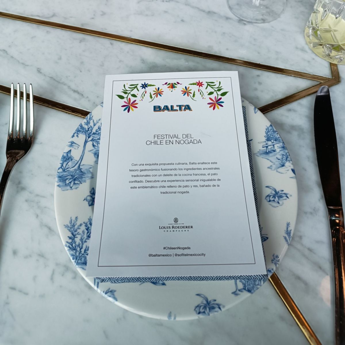 Sofitel está celebrando su Festival del Chile en Nogada 2024 y una de sus propuestas es justamente la de Balta; que combina la cocina francesa con la tradición mexicana en un chile en nogada que te hará agua la boca. El chile en nogada de Balta se compone de un relleno de pato y res confitados que complementan a la perfección el sabor dulce al que estás acostumbrado, una nogada tradicional con un ligero twist, y granada. Se trata de una presentación sencilla, pero super appealing a la vista. Una de nuestras cosas favoritas de este chile en nogada sin duda es su nogada fluffy y ligera que parece deshacerse en la boca; complementa cada bocado sin saturar el sabor.