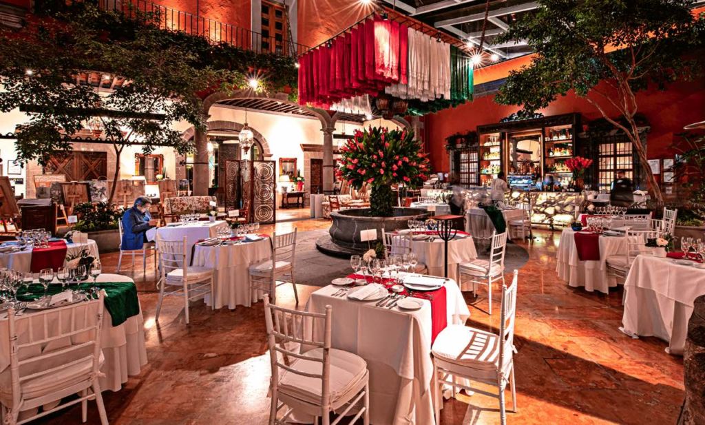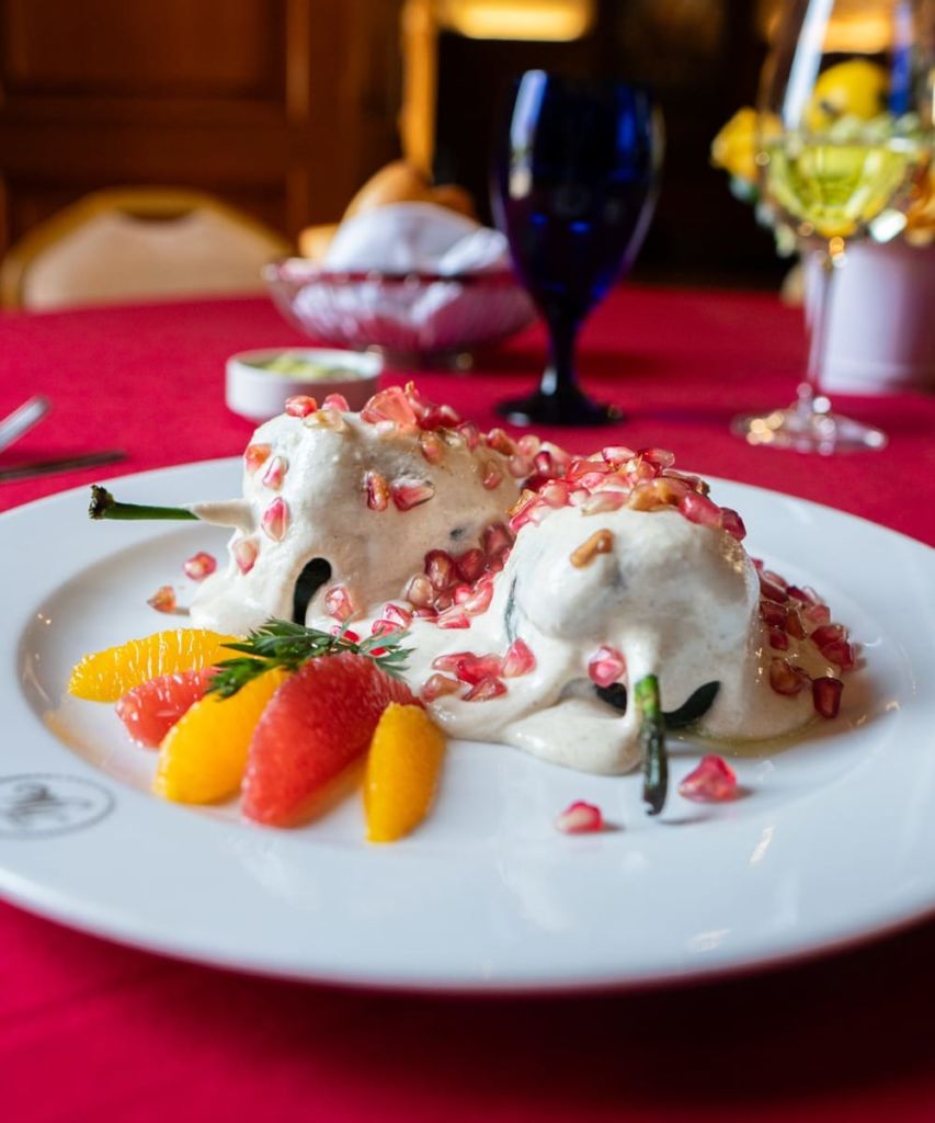 Otro clásico imperdible de la comida mexicana tradicional es la Hacienda de los Morales, que durante todo agosto y septiembre celebra el Festival de la Nogada con un menú completo en el que la nogada es el plato principal con platillos como la crema de nogada —una sopa de nogada con bolitas de queso—, ravioles de nuez de castilla —con espuma de parmesano reggiano—, y por supuesto, la receta infalible de los chiles en nogada.