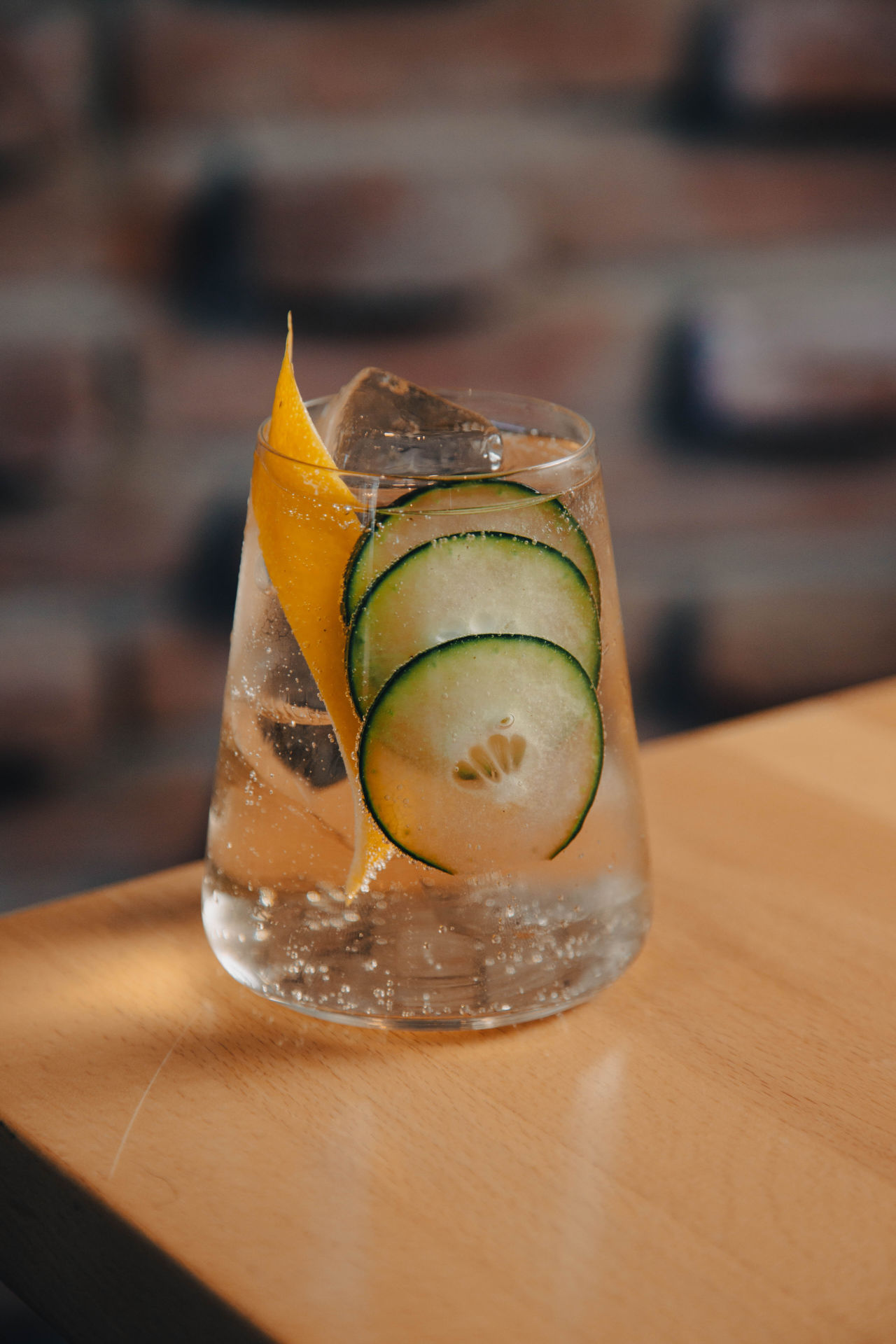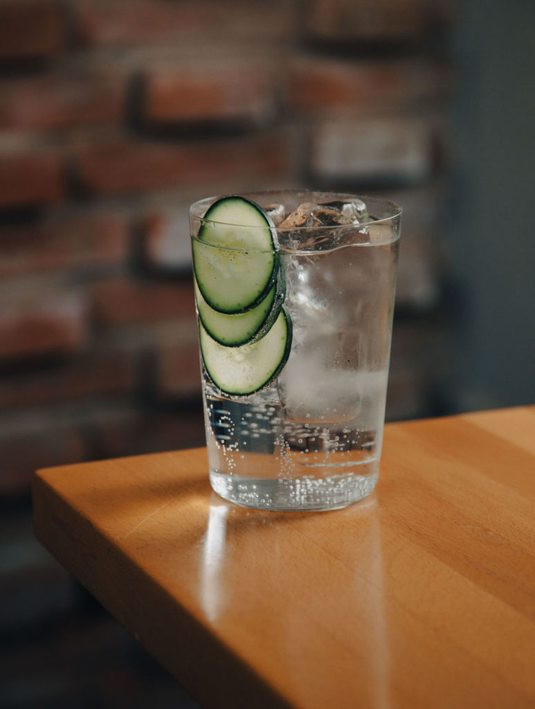 Preparación: Agrega todos los ingredientes en un vaso highball con hielo. Mezcla ligeramente y adorna con las 3 rodajas finas de pepino y la cáscara de limón.