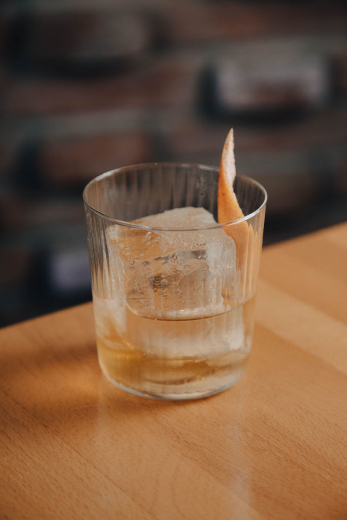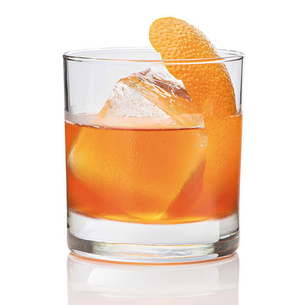 Preparación: Mezcla todos los ingredientes en un vaso con hielo. Decora con la cáscara de naranja.