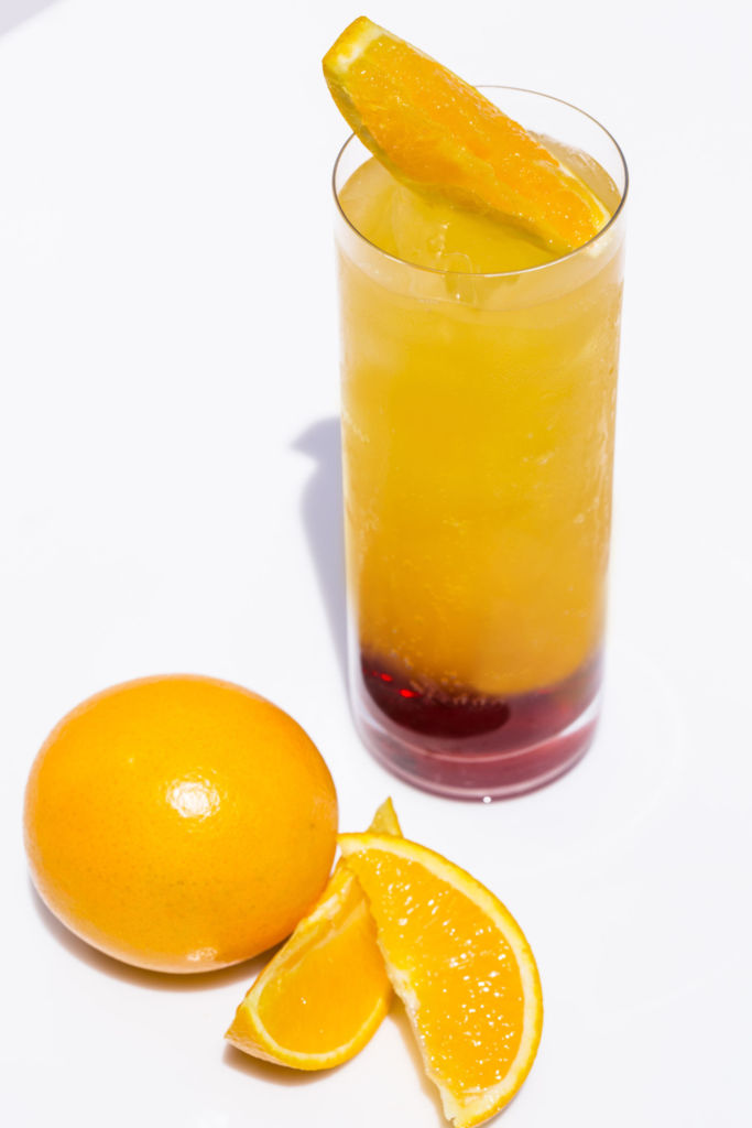 En un vaso highball con hielo, vierte una onza y media de tequila , una onza de licor de granada y cuatro onzas de jugo de naranja. Decora con un gajo de naranja sobre el hielo como garnitura. ¡Salud!