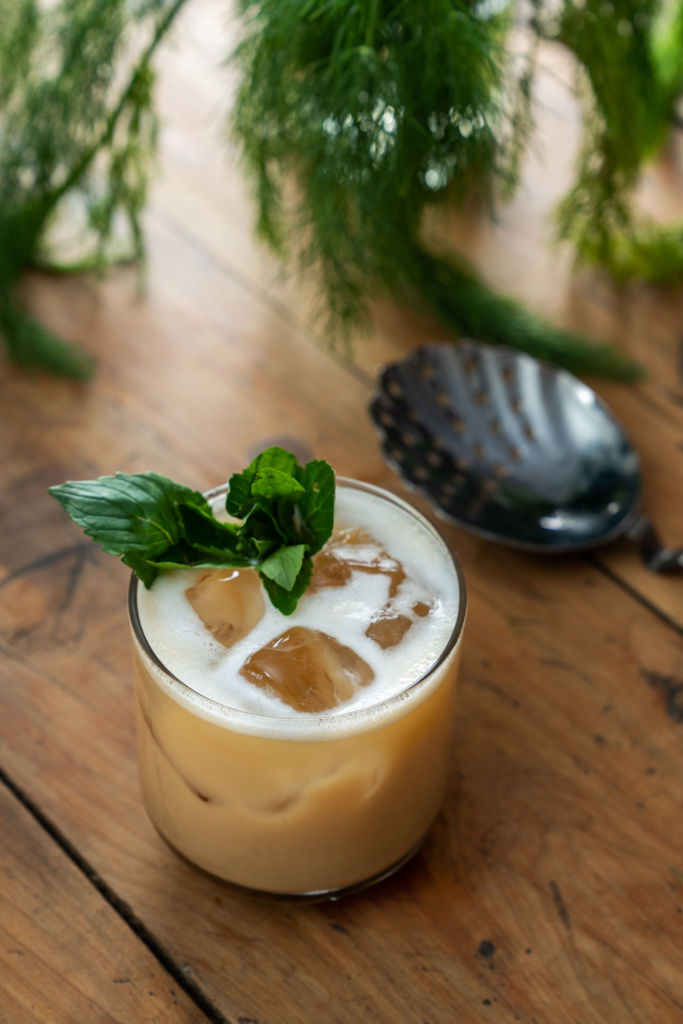3) Cuela la bebida en un vaso old fashioned con hielo cubo.