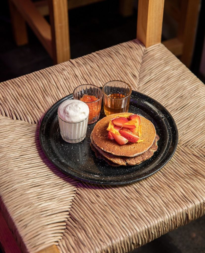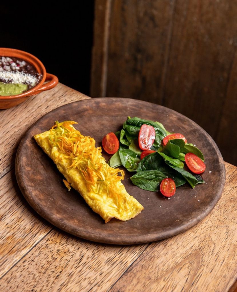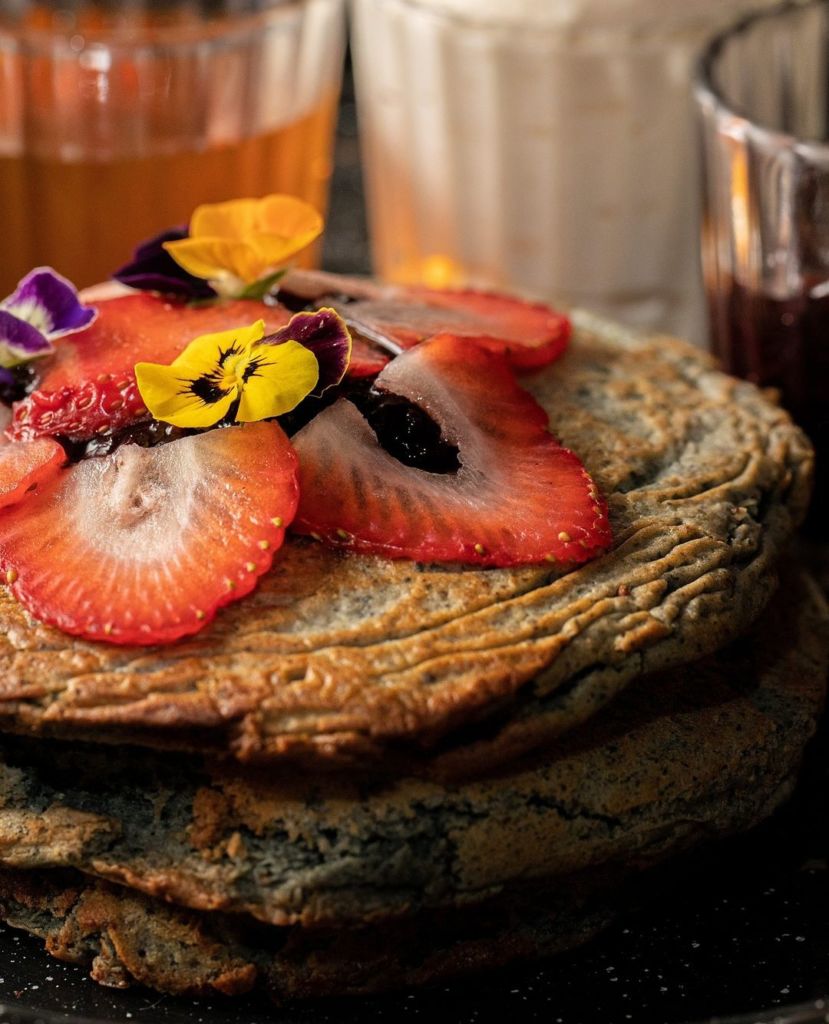 Sin duda alguna, entre los platos más arriesgados del restaurante están sus pancakes de maíz azul, reinventado el uso común de uno de los ingredientes más representativos de México, a través de un desayuno dulce y reconfortante. Se sirven con fresas y una compota de frutos rojos, que crea el balance perfecto entre sus sabores.