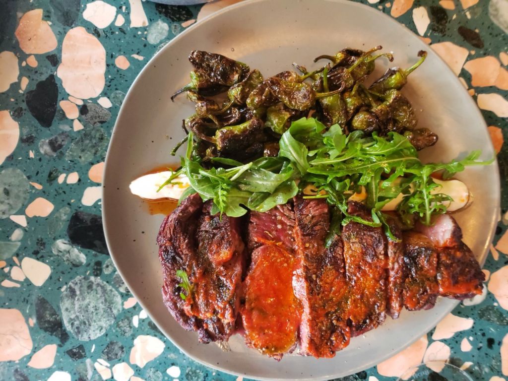 La pesca del día será la opción infalible si te gustan los pescados como el Huachinango, pero si eres fanático de los cortes, el fantástico Rib Eye con Pimientos de Padrón y aceite de chiles sin duda alguna valdrá la pena, tiene un ligero sabor picante que le da un toque distinto.