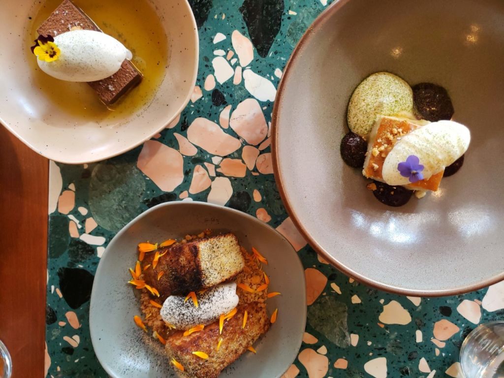 Para cerrar con broche de oro, un solo postre no será suficiente, puesto que cada uno es tan diferente y con sabores inigualables. Puedes elegir una opción crujiente como el ‘Brioche Dorado a la Mantequilla’, o una realmente chocolatosa, con textura firme que se deshace en tu boca como mantequilla, hablamos de la ‘Trufa de chocolate con helado de crema ácida y pimienta negra. La última de nuestras sugerencias es el ‘Cheesecake de nata’, acompañado con una bola de helado de yogurt filtrado y coulis de frutos rojos.