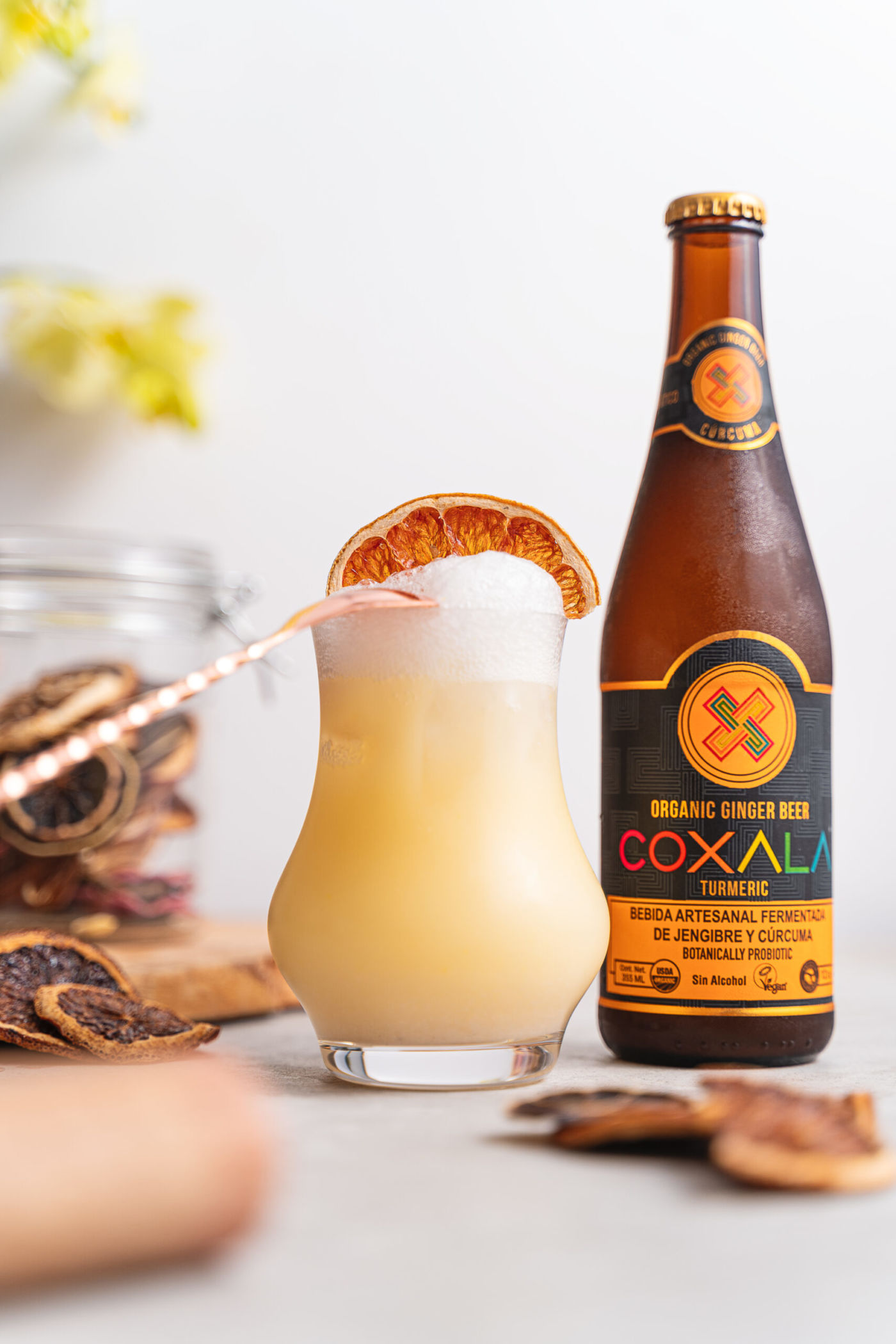 El secreto detrás de los enormes beneficios de esta cerveza de jengibre son precisamente sus ingredientes orgánicos —una mezcla de jengibre, cúrcuma y otras raíces— que se fermentan de tal modo que el azúcar no se convierta en alcohol, sino en ácido láctico y acético. Así, además de no contener alcohol ni gluten, Coxala es baja en sodio y azúcar y tiene propiedades probióticas. Pero la lista continúa, pues esta cerveza afirma mejorar la digestión, aumentar la biodisponibilidad de nutrientes, desintoxicar el cuerpo y reducir las náuseas, el agotamiento y los dolores abdominales.