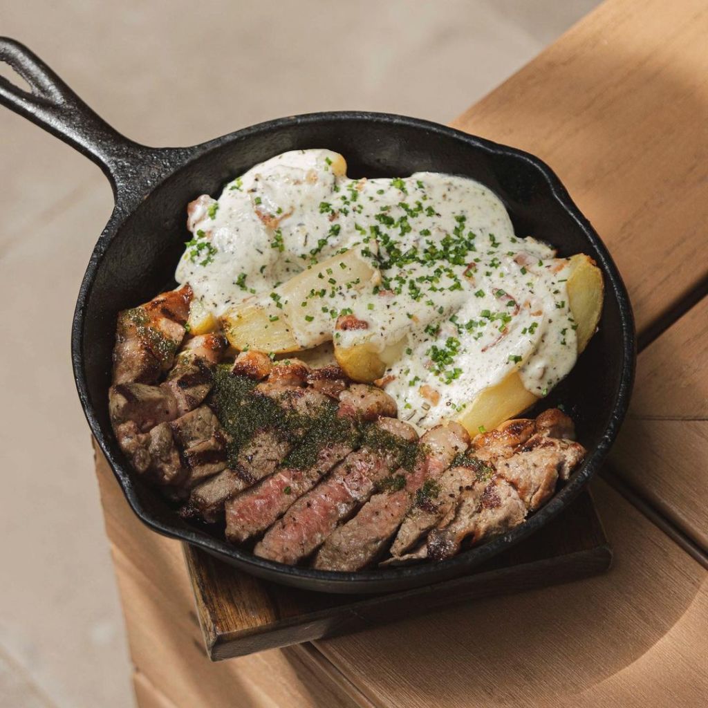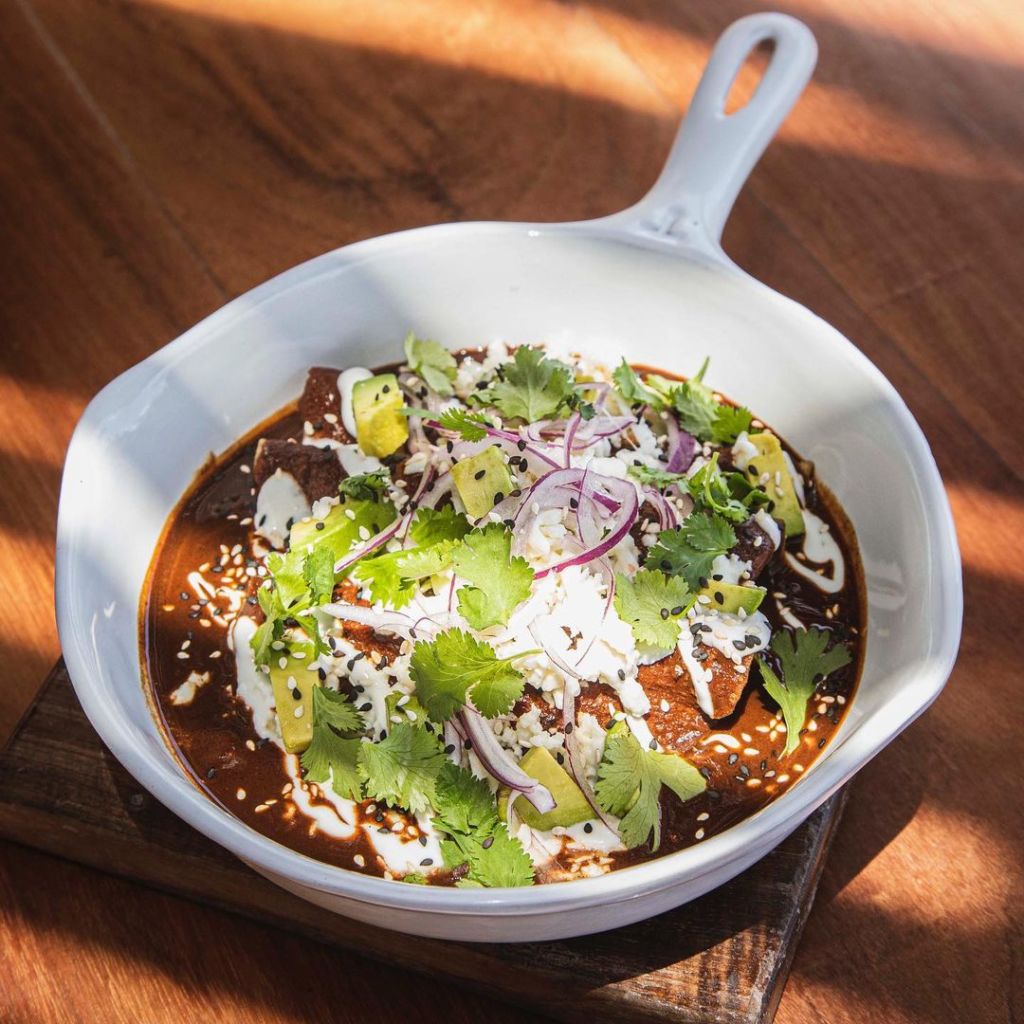 Lo que hace tan especial al menú de Cuna es que sus platos son una expresión auténtica de los ingredientes locales y de temporada, preparados en platos sumamente coloridos y creativos. En caso de visitar el restaurante por la mañana, vale la pena probar su omelette de chilaquil con salsa de tomate asado, crema, cilantro y aguacate; para una cena espectacular, recomendamos su New York a las brasas con papa asada o su pulpo maya al grill con mole y plátano macho.