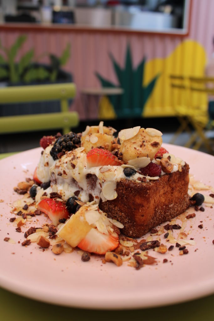 En cuanto a los desayunos, no pueden faltar los bowls dulces con fruta, los huevos en diversas versiones, ‘el egg burrito’ que es de los favoritos y los suculentos chilaquiles que también puedes pedir con proteína. Una vez terminado el desayuno no olvides pedir el pan francés de postre, ¡sí como lo escuchas, de postre!, ya que es un imperdible en su carta; lo sirven con plátano caramelizado o frutos rojos, aunque también lo puedes pedir mixto y a pesar de que se ve enorme es muy ligero y con bastante sabor a canela que combina perfecto con la acidez de los frutos rojos y el dulzor del plátano.