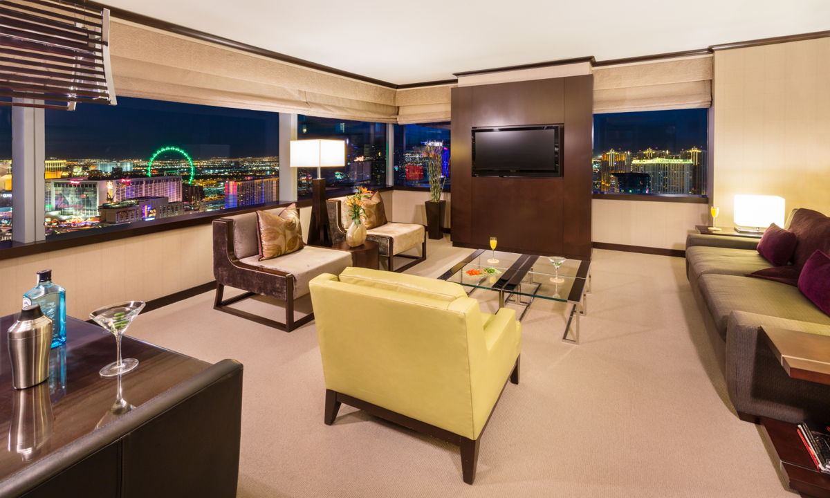 Ubicada en las alturas del lujoso Vdara Hotel & Spa –único en su tipo pues no posee un casino– esta suite ofrece excepcionales vistas de las famosas fuentes del Bellagio. Este espacio con estilo contemporáneo, sumerge a sus huéspedes en un refugio romántico lejos del ajetreo del Strip, pero al mismo tiempo dentro de la divertida escena característica de Las Vegas.
