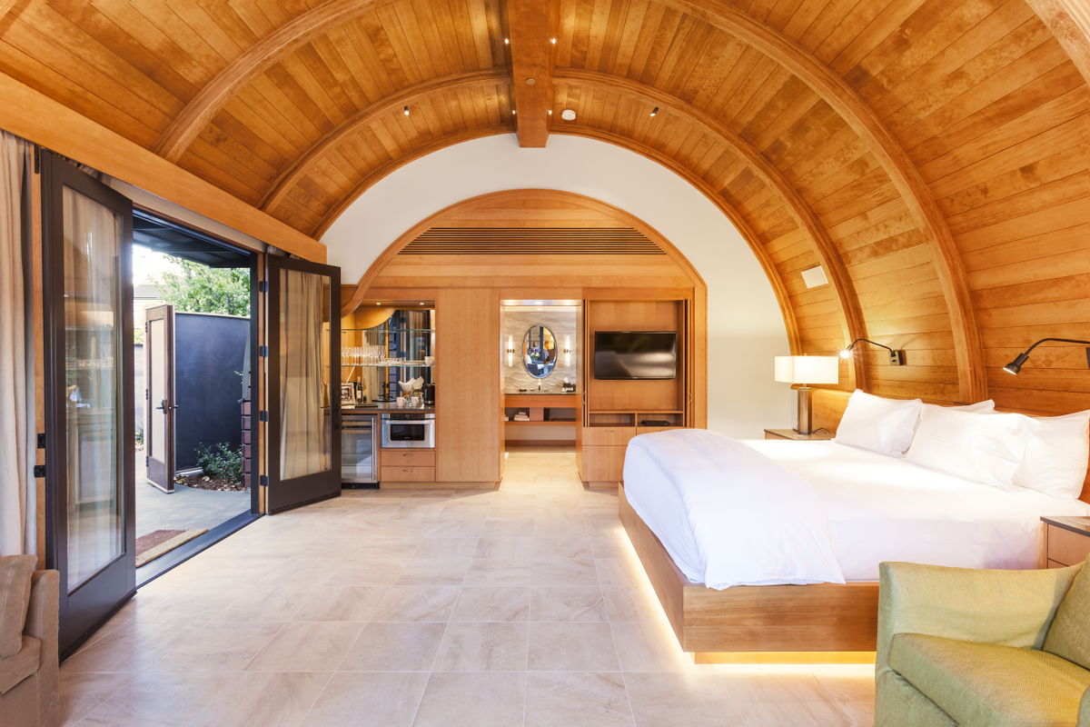 Está situada en el corazón de Healdsburg, uno de los destinos culinarios más importantes de todo el Wine Country, debido a los extraordinarios restaurantes que ahí se encuentran. Cuenta con cinco suntuosas suites que poseen desde una hasta tres habitaciones, que van de los 42 a los 153 metros cuadrados. Su diseño rústico con techos de madera se inspira en las barricas en las que el vino potencia sus propiedades, lo que permite a las parejas disfrutar de la esencia de la región en el interior de su habitación.