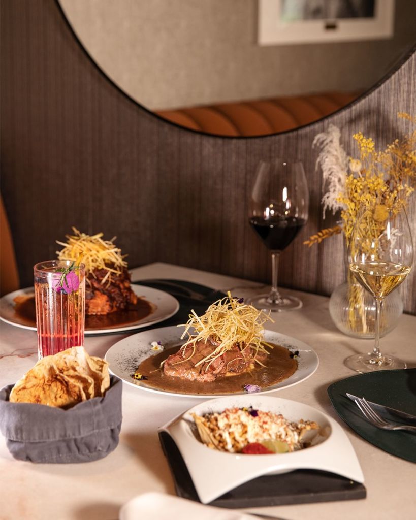 En cuanto al menú, este corre a cargo del chef David Gallegos, quien se encarga de crear un balance perfecto entre ingredientes frescos de temporada, tradición gastronómica y patrimonio artístico nacional. El resultado son maravillosos platos que rinden tributo a la cocina mexicana, de toque contemporáneo y esencia creativa; entre los imperdibles están su betabel a la leña, sus tostadas de atún con aguacate, y sus tlacoyos rellenos sobre salsa de chile cascabel.