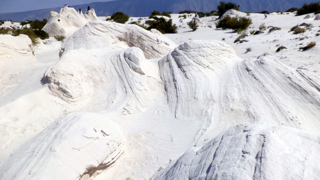 El sitio se conforma por 800 hectáreas de arenas blancas, mismas que crean grandes dunas de composición mineral sorprendente, rodeadas de vestigios geológicos significativos para la investigación científica. La zona en la que se encuentran las Dunas de Yeso solía ser un ojo de agua, evaporado y transformado en infinidad de cristales de sulfato de calcio – yeso puro – de un color blanco luminoso, que con la fuerza del viento se han ido moldeando en bellísimas esculturas naturales.