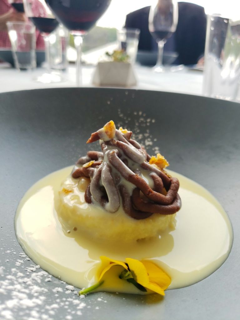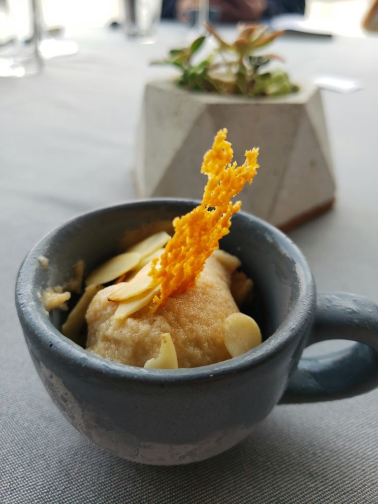 Para limpiar el paladar te ofrecerán un sorbet de capirotada y posteriormente un suave y dulce Montblanc de camote y cacao que resulta ser excelso, la cereza del pastel llega con el Petit Four, que incluye una Naranja Finjida, una trufa de mamey con almendra y un rico bombón de chocolate.