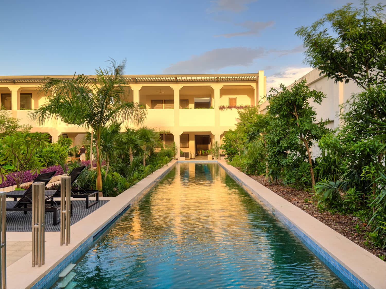 El Pueblo es un alojamiento en Mérida que centra sus esfuerzos en brindar una estancia cómoda y significativa. Para ello, cuentan con áreas de descanso y recreación como una alberca semiolímpica natural, un restaurante de desayunos plant-based y un jardín de plantas nativas que invitan a la contemplación. Aunque no tienen spa, puedes solicitar una sesión de masaje directo en tu habitación. Si te gusta conocer gente nueva, en las áreas comunes del hotel también se fomenta el intercambio de historias con otros huéspedes. Vale la pena mencionar que el los dueños de El Pueblo pertenecen a la comunidad LGBT+, y para ellos, es una prioridad máxima que la gente de la comunidad se sienta segura y bienvenida en este espacio.