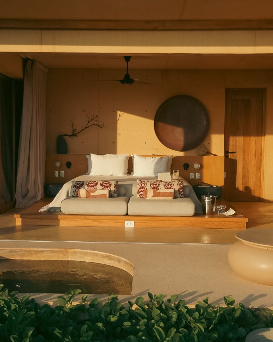Cada suite está diseñada con materiales naturales que puedes sentir bajo las manos —madera cálida al tacto, piedra suave desgastada por el tiempo, fibras locales tejidas a mano— y cuenta con vistas directas al océano o a los paisajes tropicales que rodean la propiedad. Hay villas amplias con terrazas privadas donde puedes quedarte horas contemplando el mar mientras el aroma de la madera se mezcla con el salitre. Todo está pensado para que vivas un retiro privado, aunque estés en un hotel.