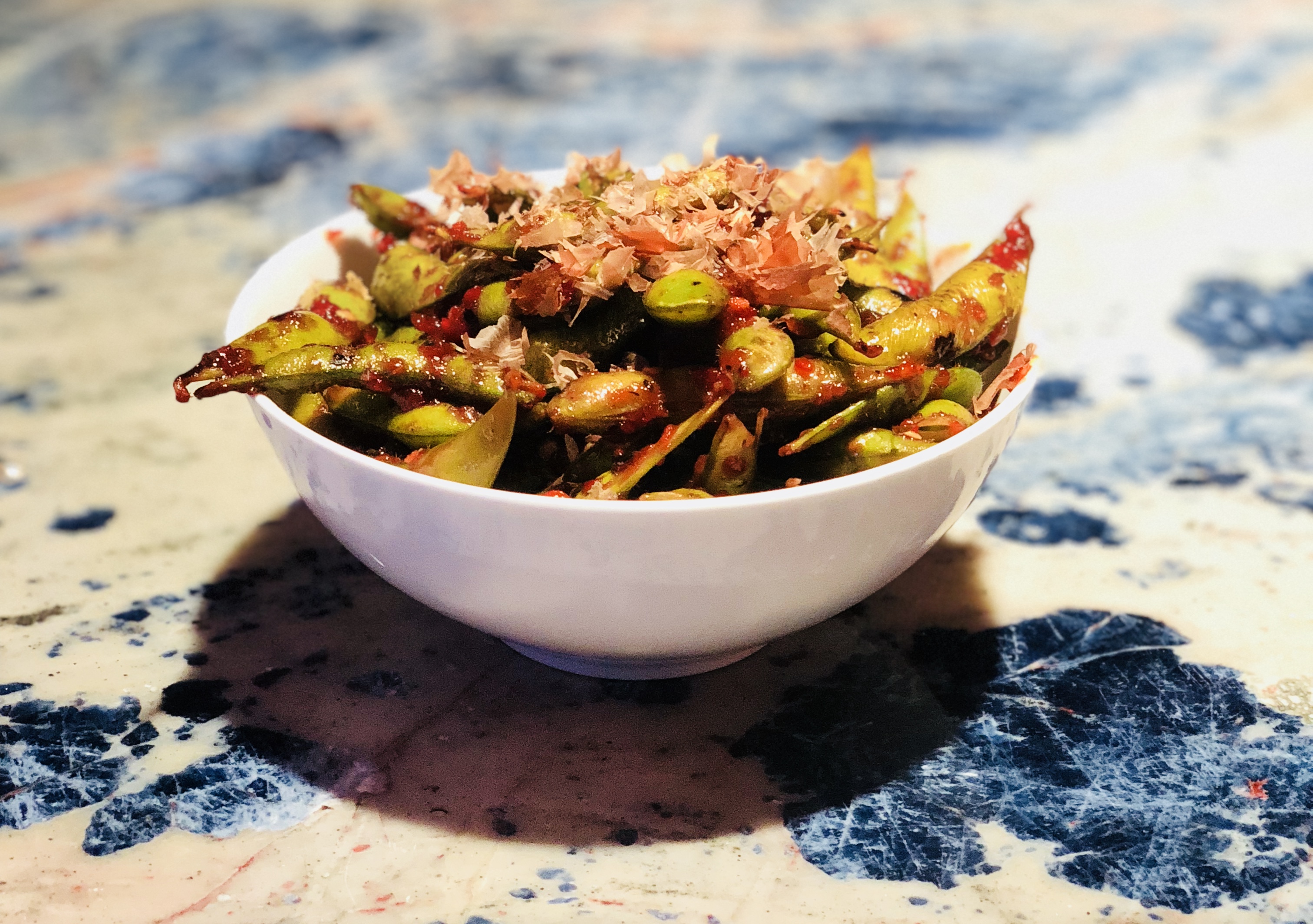 El equipo de Food and Pleasure tuvo el placer de visitar este último restaurante y la verdad es que lo consideramos un must si eres fanático de la gastronomía asiática y por supuesto de pasar horas y horas de diversión –en Alboa Prime el tiempo pasa volando–. Lo primero que probamos, fueron unos edamames con salsa kimchi y Bonito en hojuelas. Lo sorprendente de este platillo fue que además de delicioso, ¡literalmente se mueve! Todo producto de las hojuelas deshidratadas, que al ponerse en contacto con el calor crean una reacción –que aún no terminamos de entender– el resultado es increíble.