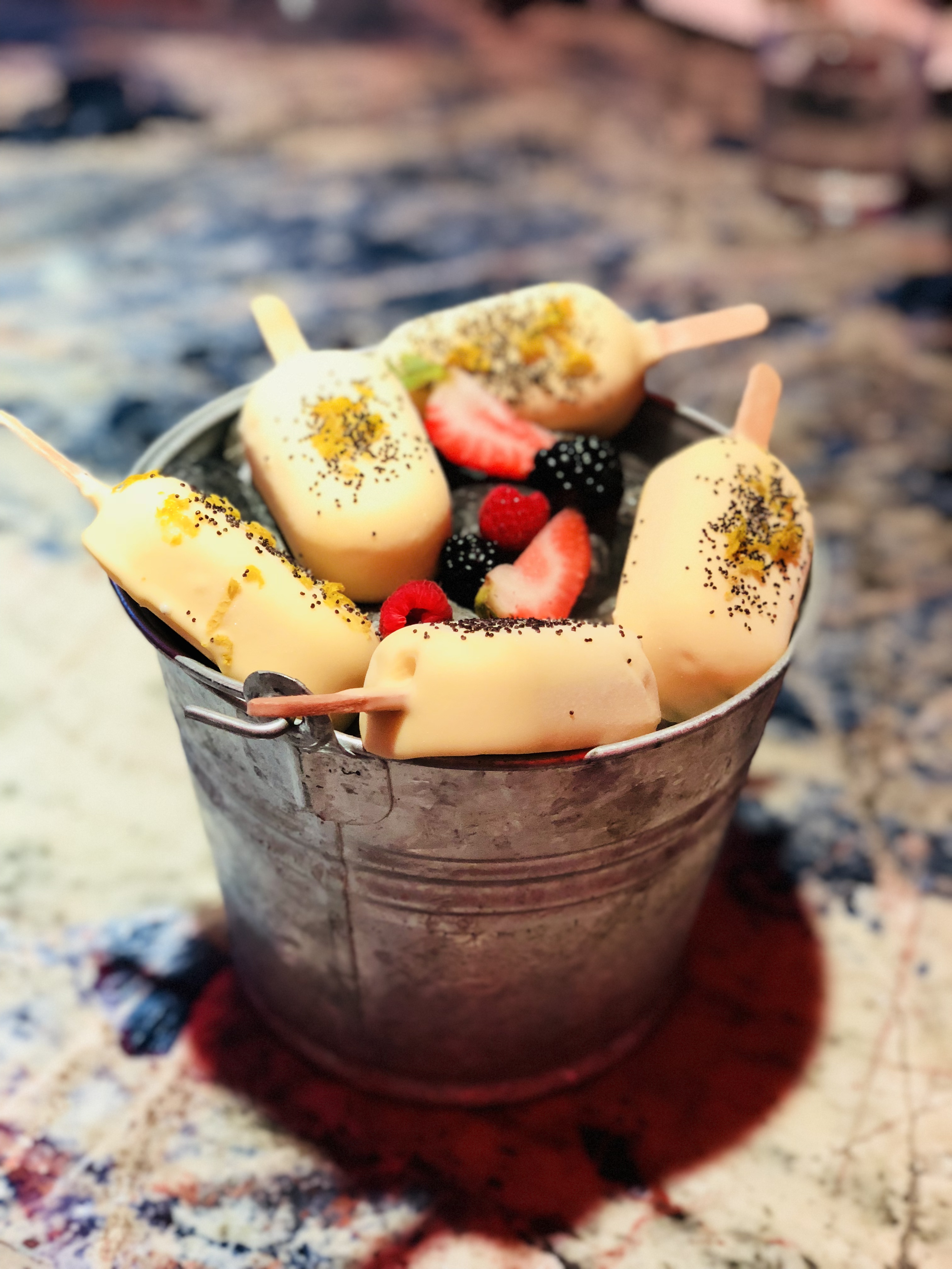 El postre va al alma y no al estómago, y es por ello que siempre tenemos un lugar especial reservado para todo lo que tenga que ver con dulce. En DAO, nos deleitaron con un Brownie de chocolate con helado de plátano y un pastel helado de té verde que sencillamente son los imprescindibles si no puedes vivir sin un poquitín de azúcar después de tus comidas. Sin embargo, aquel platillo que cerró con broche de oro nuestra visita fue definitivamente la cubeta de paletas heladas de naranja, jengibre y chocolate blanco. Si el espectáculo del nitrógeno líquido no te conquista, su contraste de sabores definitivamente lo hará.