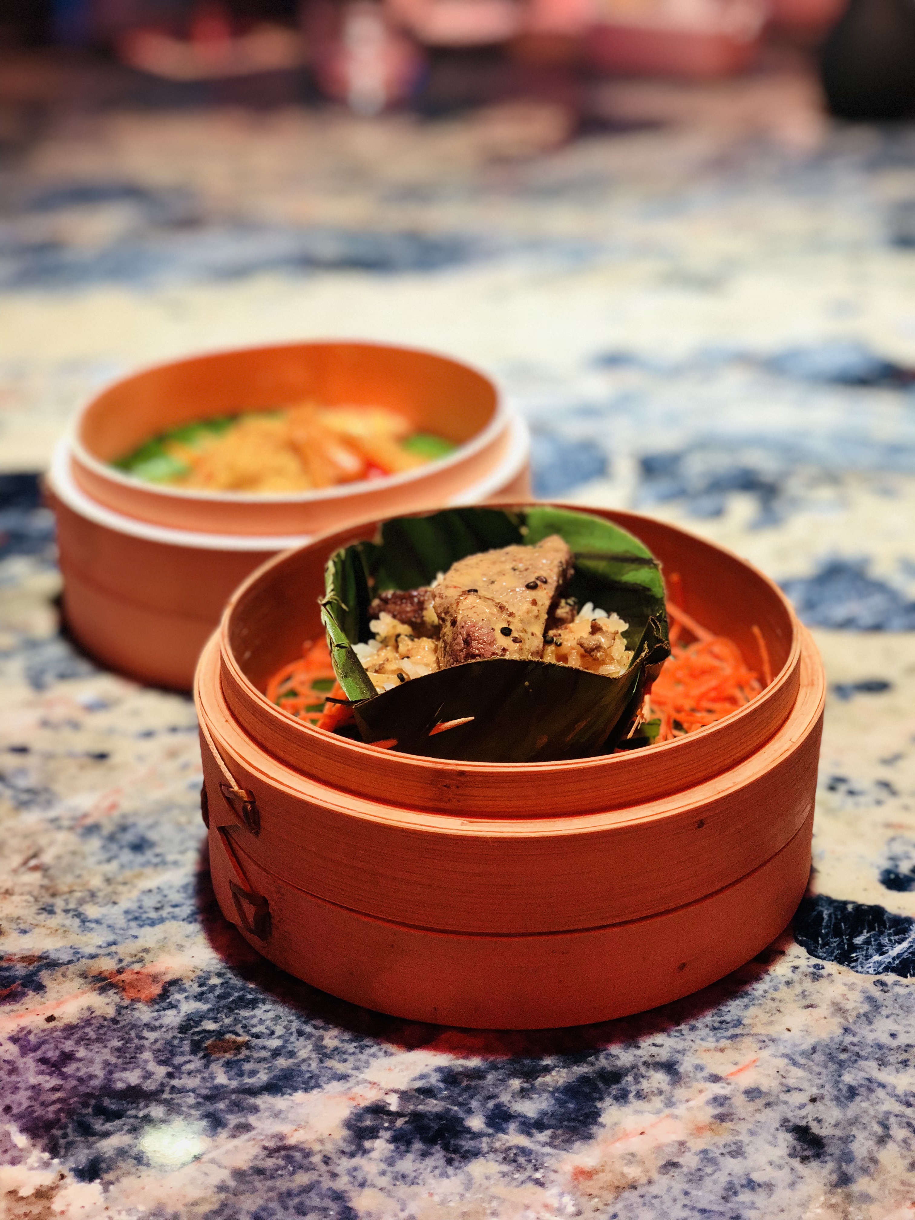 DAO se caracteriza además por tener una excelente barra de mixología, por lo que acompañamos nuestra cena con un DAO Martini, preparado con vodka, jazmín y sake de durazno. Posteriormente, llegó frente a nosotros la segunda vaporera, la cual albergaba en su interior unos fideos al curry con camarón y pimientos que nos transportaron directo hasta Japón. En su segundo nivel, contaba con un magnífico Beef Curry con arroz blanco, inspirado en la tradición tailandesa y elaborado con carne de res y una salsa a base de curry, leche de coco y agua de coco.