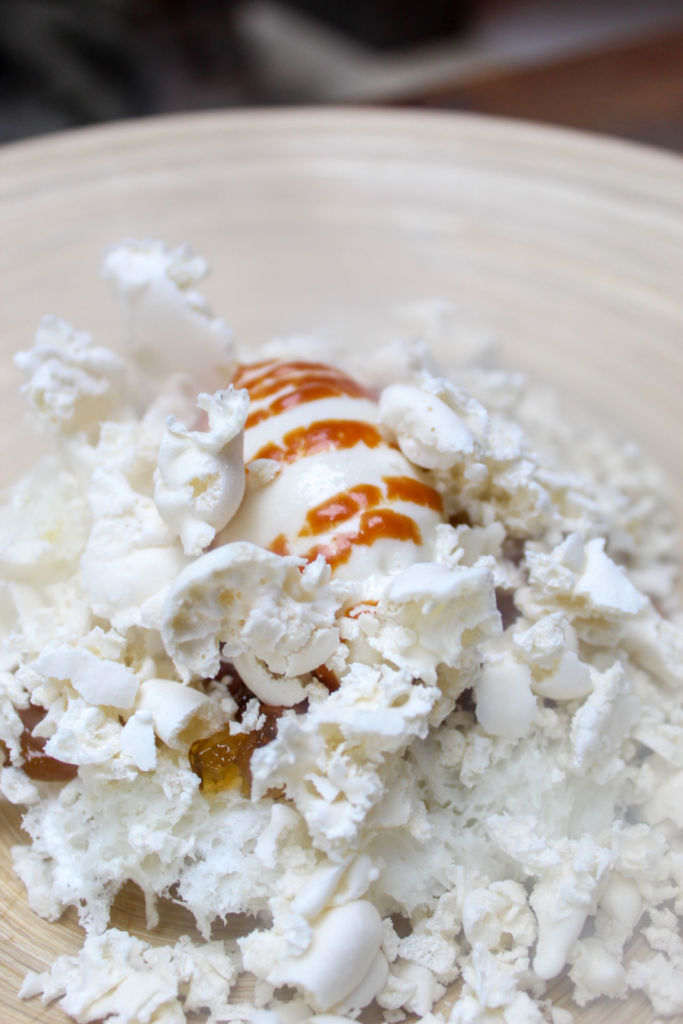 Lo que distingue a Elena 147 son sus ‘postres al plato’, usualmente presentados en restaurantes contemporáneos y ofreciendo una combinación especial de texturas, colores y sabores. Uno de los favoritos es su ‘Miel, manzanilla y romero’, servido con yogur de romero, streusel de vainilla, gel de miel y romero, helado de miel hecho en casa, toffee y palomitas de manzanilla, éstas últimas las terminarán en tu mesa con nitrógeno, elevando aún más la experiencia que es probarlo.