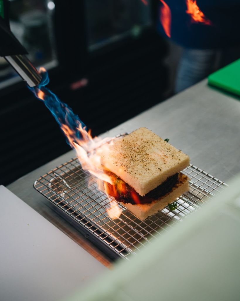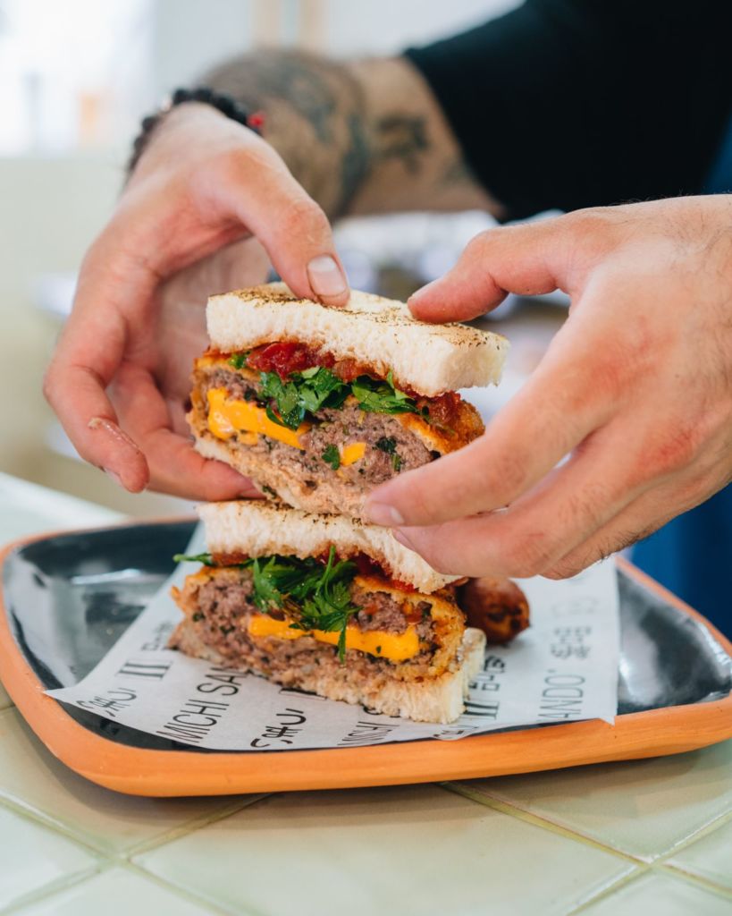 También tiene uno llamado Tamago Sando, que lleva omelet de huevo japonés dulce con mayonesa casera de vinagre de arroz y poro. Entre los imperdibles está el ‘Birria Sando’ – birria de búfalo con queso manchego y cebollitas encurtidas -, y el Burger Sando – carne de búfalo con queso cheddar, panko, mermelada de tomate y mayonesa casera -. Algo que no debes olvidar es el postre, y aquí tienen uno ¡delicioso! Los Michi Churros – pan de leche frito con azúcar, mermelada casera y mascarpone.