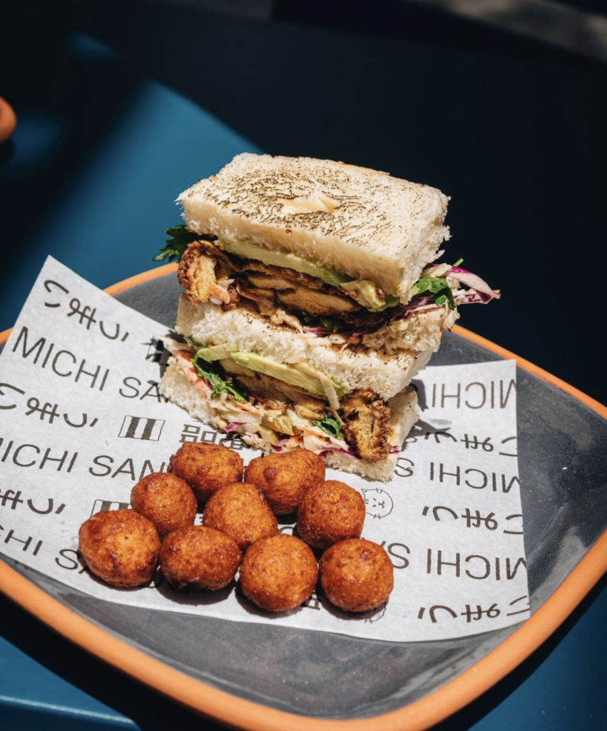 Michi Sando surgió de una plática entre amigos en la cual se comentaba que hacía falta un lugar relajado y divertido, con una propuesta de cocina poco convencional. Fue así como este sueño se hizo realidad y ahora nos deleitan con sustanciosos emparedados japoneses, ‘sandos’. En su menú encontrarás deliciosas botanas ideales para compartir como los onigiris, las Michi Pops – bolitas de papa con aderezo de ajo, queso de Chiapas y pork belly – y las Michi Tiras – tiritas de pollo bañadas en una salsa agridulce de chile y ajo -, ¡tienes que probarlas!
