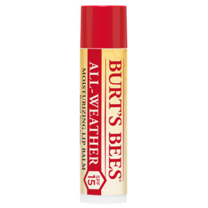 Úsalo en todo momento, pues te ayudará a mantenerlos suaves e hidratados. El nuevo All Weather Lip Balm con FPS 15 de Burt’s Bees® es un producto fabricado con ingredientes naturales y nutritivos como la cera de abeja, el aceite de jojoba y el aceite de oliva, además de que contiene óxido de zinc que brinda una pantalla solar física a base de minerales que refleja los rayos UV naturalmente.