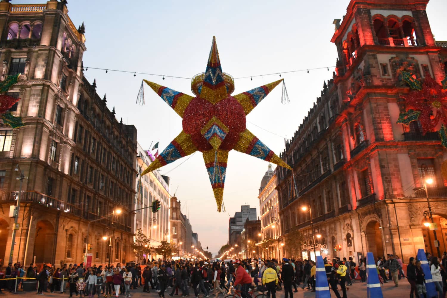 Decoración de la Verbena Navideña en el Zócalo capitalino.