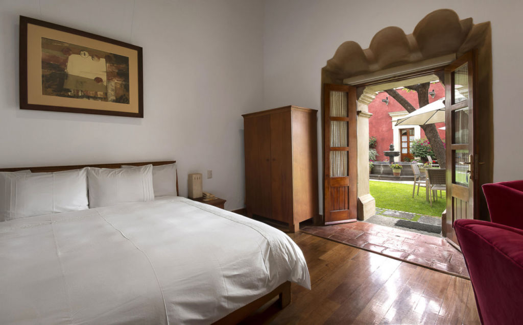 Las paredes rosa salmón de la Hacienda San Antonio contrastan con el verde de la vegetación tanto de los patios y corredores interiores como del volcán activo que se extiende ante los ventanales y las terrazas. Definitivamente querrán pasar más de un par de días en este mágico lugar donde se ofrece una amplia variedad de opciones para tener unas vacaciones románticas de lo más activas: vuelo en globo, equitación, paracaidismo y bici de montaña para los más extremos, y clases de ‘wellness’, alberca y jardines para los que buscan un plan más relajado. No te pierdas de una cena más romántica en el restaurante ubicado en el rooftop con vista al volcán, cuyos ingredientes vienen directo de la huerta del mismo hotel.