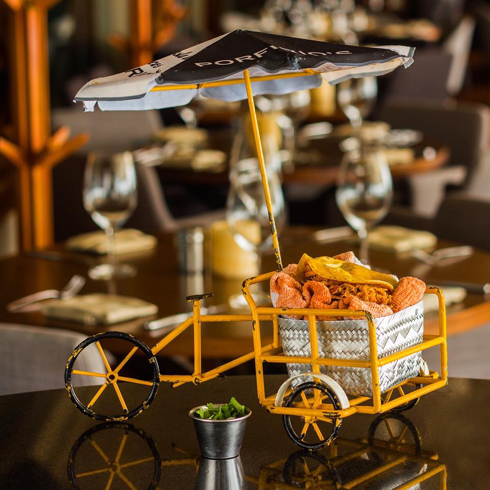 Para los amantes de los antojitos callejeros, Porfirio’s es un imperdible, pues en su cocina, especializada en platillos típicos mexicanos, destacan preparaciones clásicas que se pueden ver en cualquier puesto, pero con un toque de alto nivel. Un buen ejemplo son sus ricos tacos de canasta, de sabores tradicionales como chicharrón prensado, papa y frijol negro, servidos en un encantador carrito.