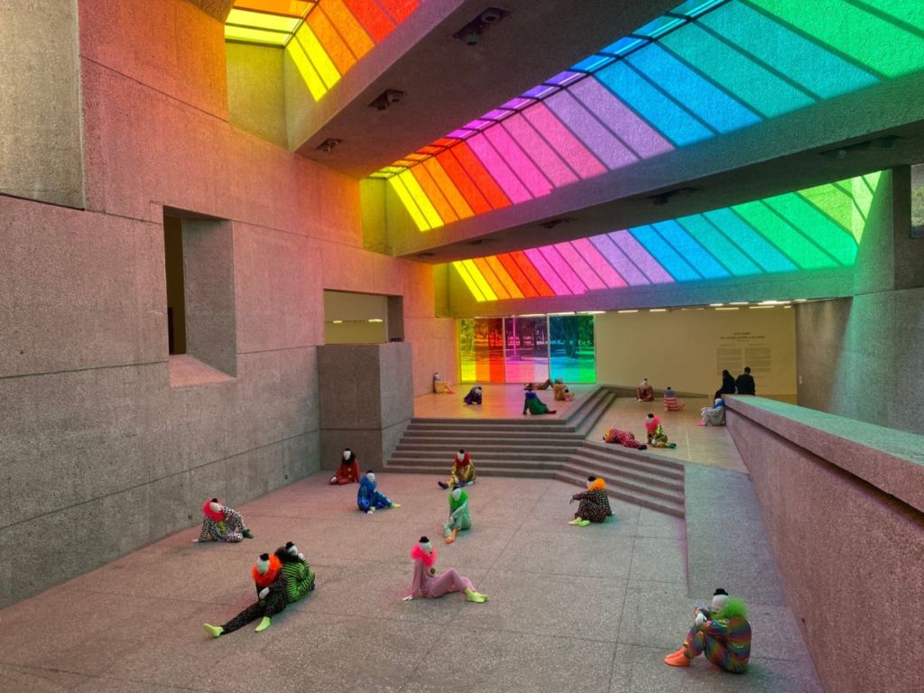 En el patio central del Museo Tamayo encontrarás ‘vocabulary of solitude’ por Ugo Rondione, artista suizo conocido por su visión generosa y multidimensional de la naturaleza y la condición humana. En esta exposición temporal presenta más de 30 payasos a escala real y en posición de descanso, creando un ambiente inmersivo y destacable por su uso del color y la artificialidad. Vislumbrarás una gama de tonalidades arcoíris, que además de entenderse como un fenómeno natural, es un símbolo de gran valor social relacionado con la comunidad LGBTQ+.
