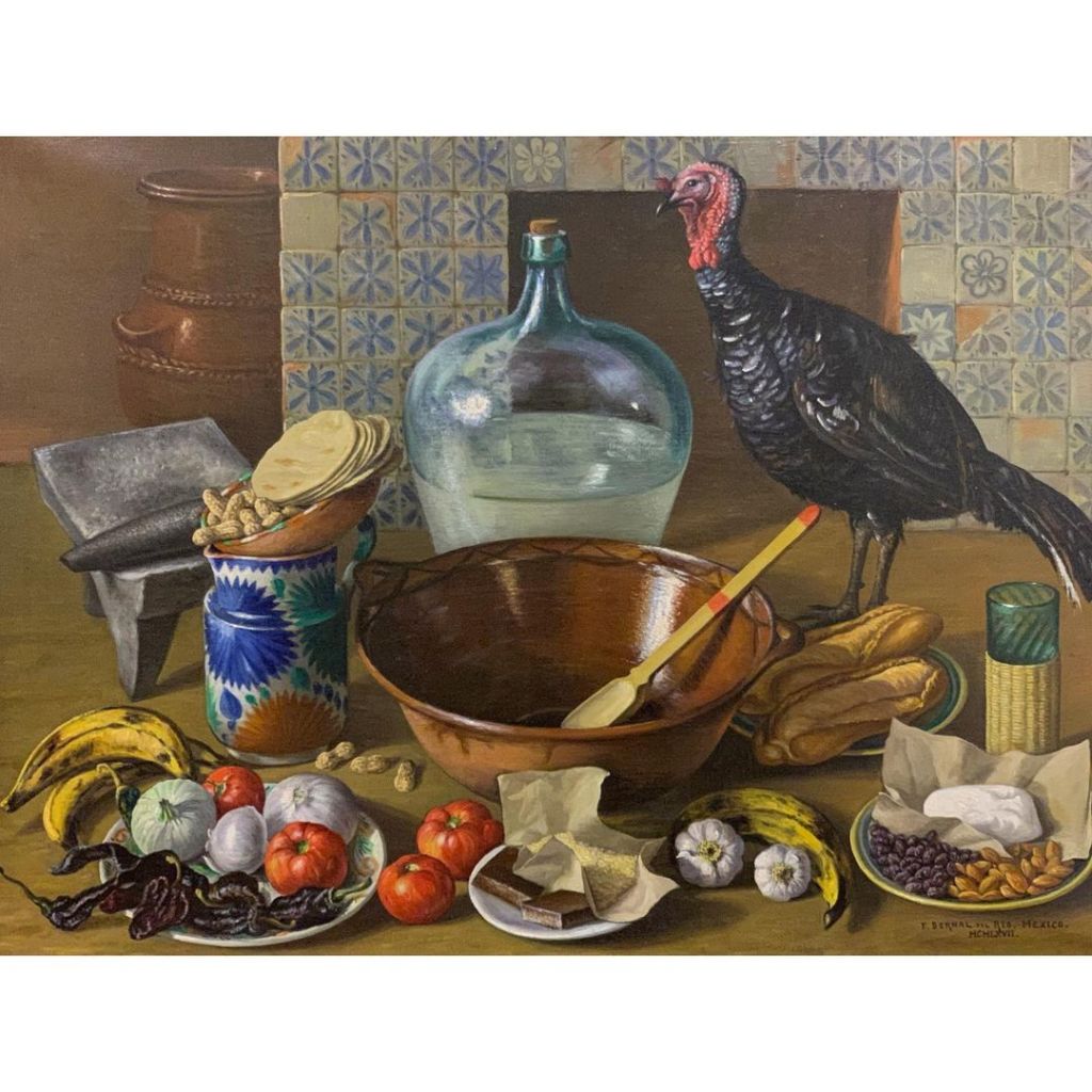 La exposición está integrada por casi 300 piezas de 70 colecciones particulares e institucionales que van desde la época prehispánica hasta obras contemporáneas. Además de pintura, también encontrarás fotografías, menús y recetarios antiguos, así como una instalación a cargo de Alfredo Marín que se vale de muebles típicos y artesanías para recrear el carácter festivo, la alegría y el colorido de las mesas mexicanas.