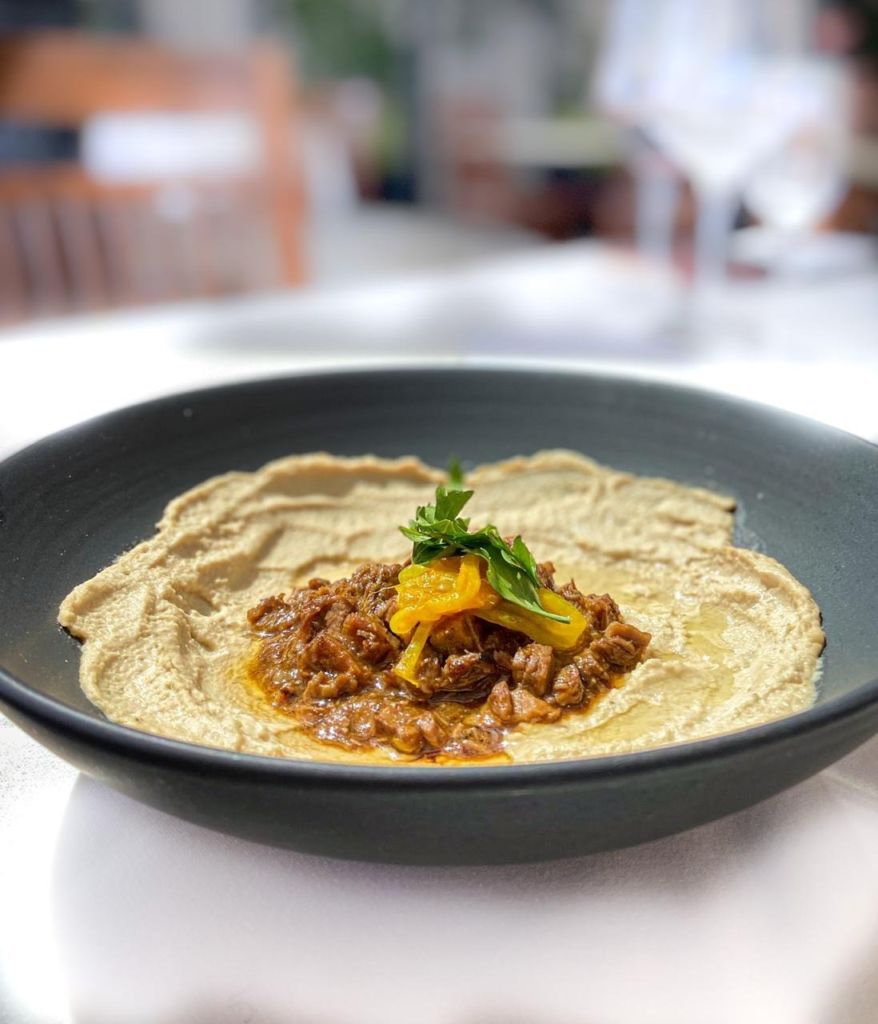 Tuvimos la oportunidad de degustar algunos de los platillos que estarán disponibles durante este mes como: Hummus con carne de res con especias yemenitas, que está acompañado de cebolla blanca encurtida en amba ( una especie de salsa de mango, deliciosa), chile güero, y perejil. El hummus acompañado de su pan árabe lo vuelve un platillo delicioso que resulta casi adictivo. El balance de las especias con la carne le brindan un sabor oriental que te proyecta a tierras lejanas en un dos por tres.