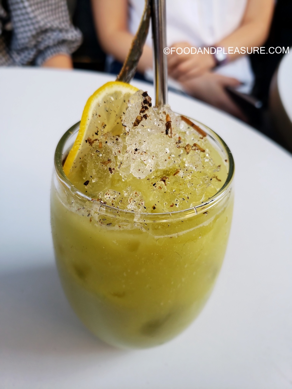 - La primera opción que probamos contaba con aguacate, hoja santa, mezcal, sal de grillo, hoja de hormiga chicatana y ralladura de alacrán. Este es el perfecto trago para los fans del aguacate, en verdad sabe y se siente, lo cual te va a encantar.