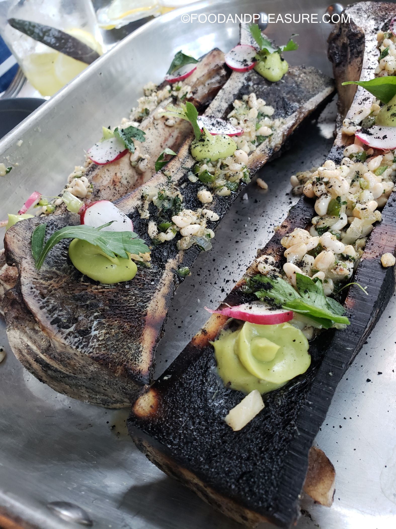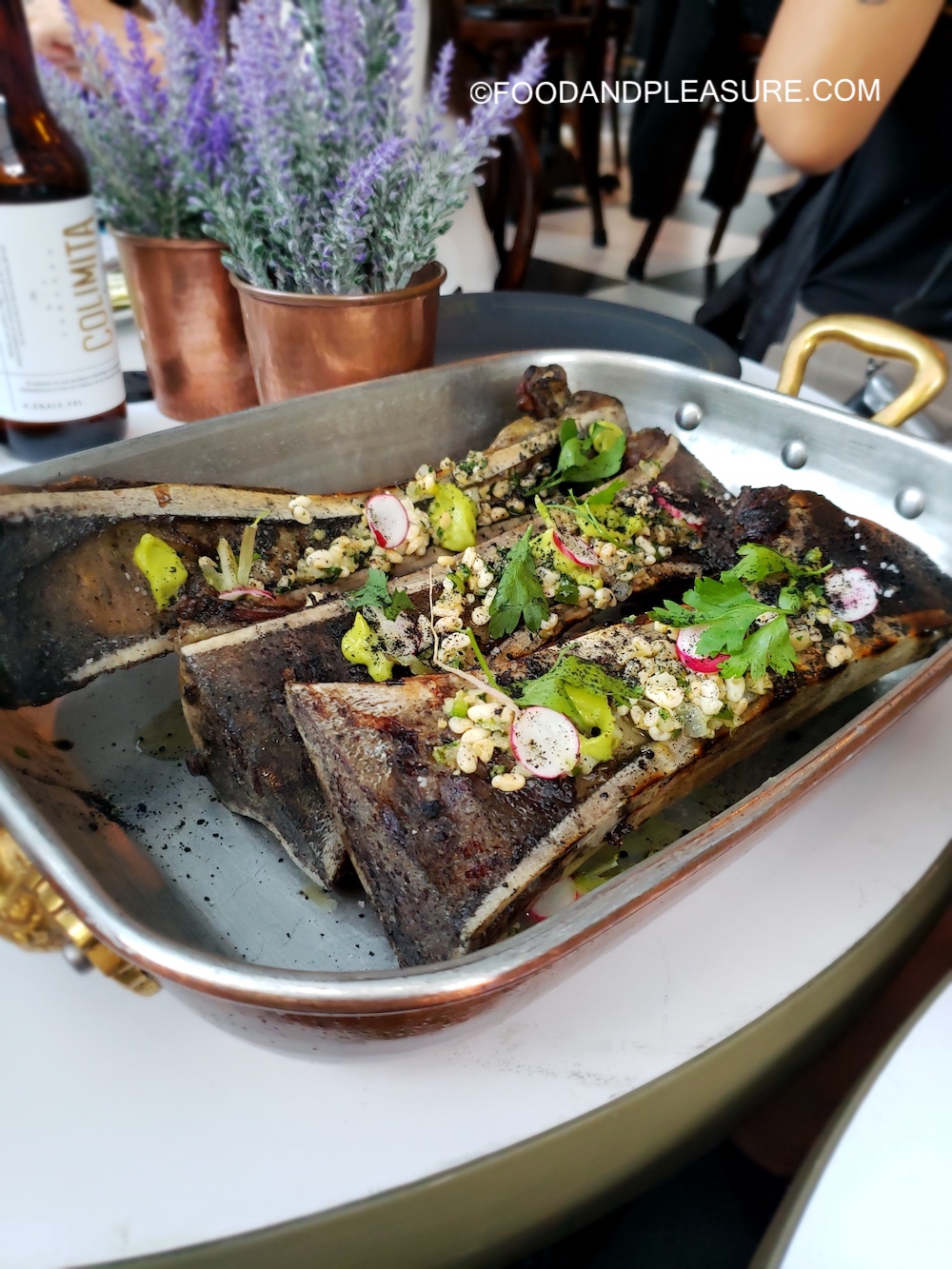 Tuétanos y escamoles-Tuétano Rostizado, servido con escamoles rostizados con epazote y ajo – que honestamente fue uno de nuestros favoritos– con sus respectivas tortillitas azules con las que puedes prepararte unos taquitos deliciosos.