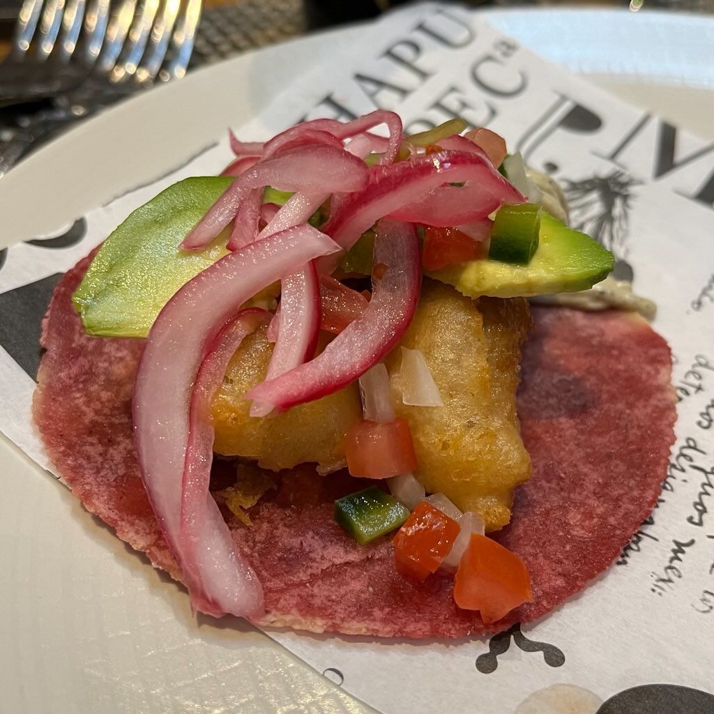 Finalmente, la chef de la casa, Josefía López, nos presenta dos tacos salados: el taco ensenada —de sierra en témpura con mayonesa de ajo, servido en una tortilla rosa súper vistosa— y el clásico taco gobernador (si te cuentas en los fanáticos de este taco, este cumplirá con todas tus expectativas). El tercer taco elaborado bajo su batuta es un taco dulce que te volará la cabeza, y no vamos a arruinar la sorpresa. Lo que sí diremos es que te recomendamos enérgicamente dejar lugar para este postre, sobre todo si lo tuyo son el chocolate y las notas frutales.