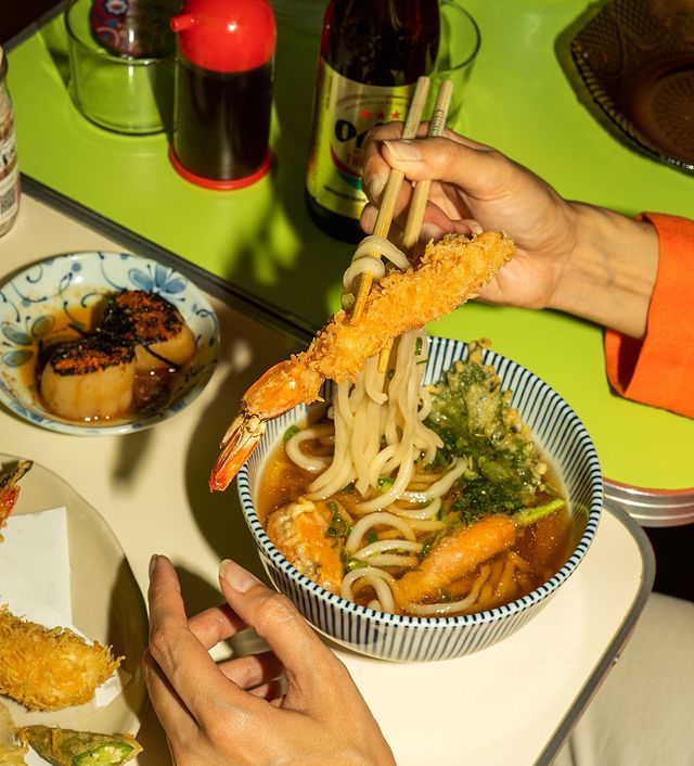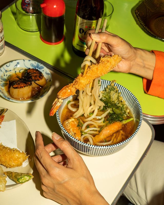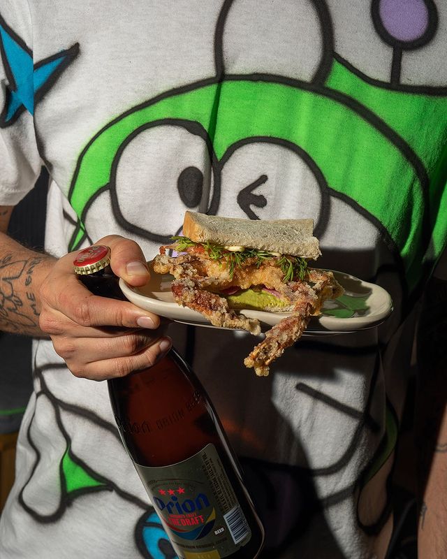 Por otro lado, además de fideos udon y obi udon, aquí encontrarás uno de los sandos más visualmente impactantes y deliciosos: el sando de jaiba suave, maridado con cerveza Orion de Okinawa —vale la pena notar que, como la mayoría de los ingredientes, muchas de las bebidas son importadas directo desde Japón—. Para terminar, un banana tempura, cuya receta aparentemente exótica trae consigo reminiscencias de la infancia dignas de Ratatouille.